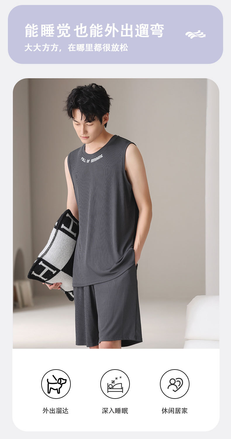 아이스 실크 스레드 남성 잠옷 여름 얇은 라운드 넥 조끼 반바지 청소년 캐주얼 루즈 핫 스타일 홈웨어스토어 가기