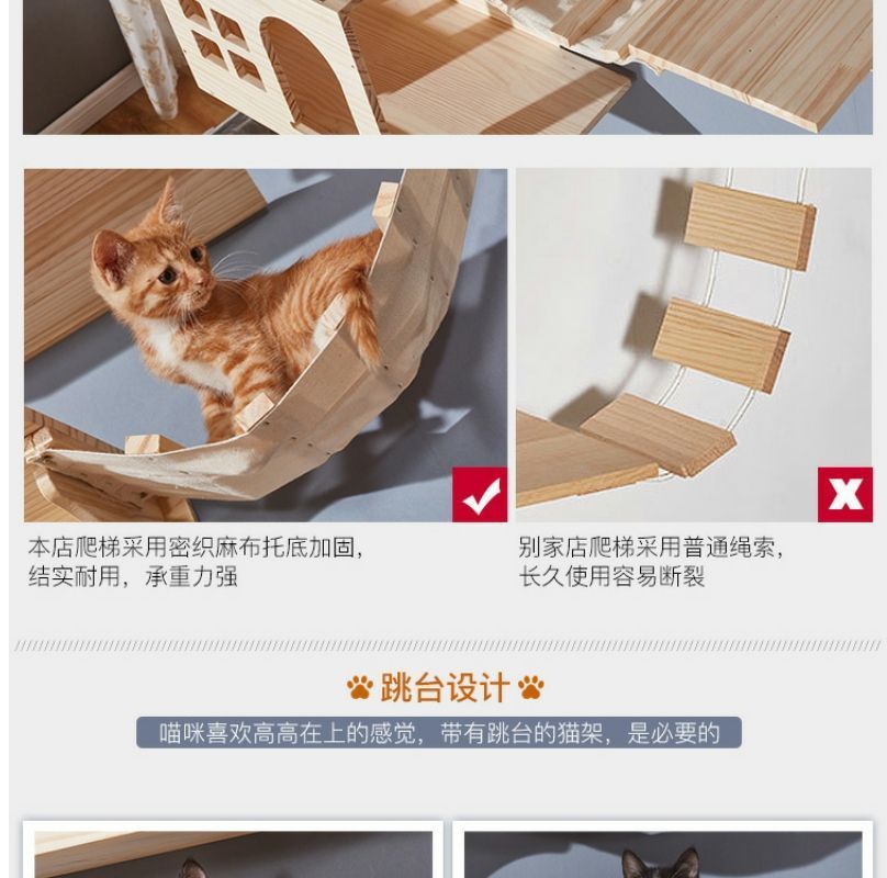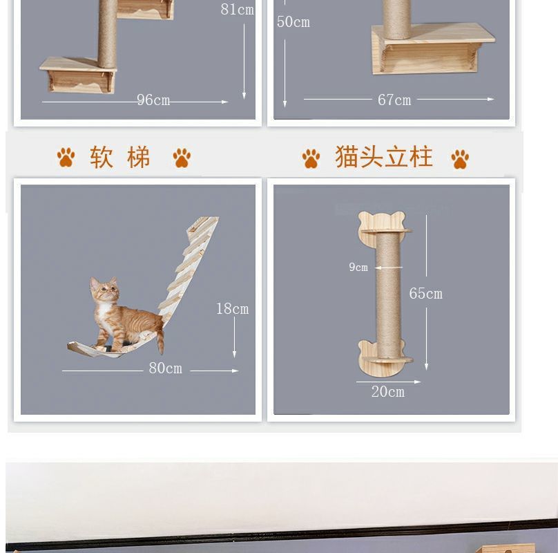 벽걸이형 고양이 클라이밍 프레임, 벽걸이형 원목 고양이 둥지 점프 플랫폼, 고양이 스크래치 컬럼, 고양이 스크래치 보드, 고양이 벽 에어 코일리지