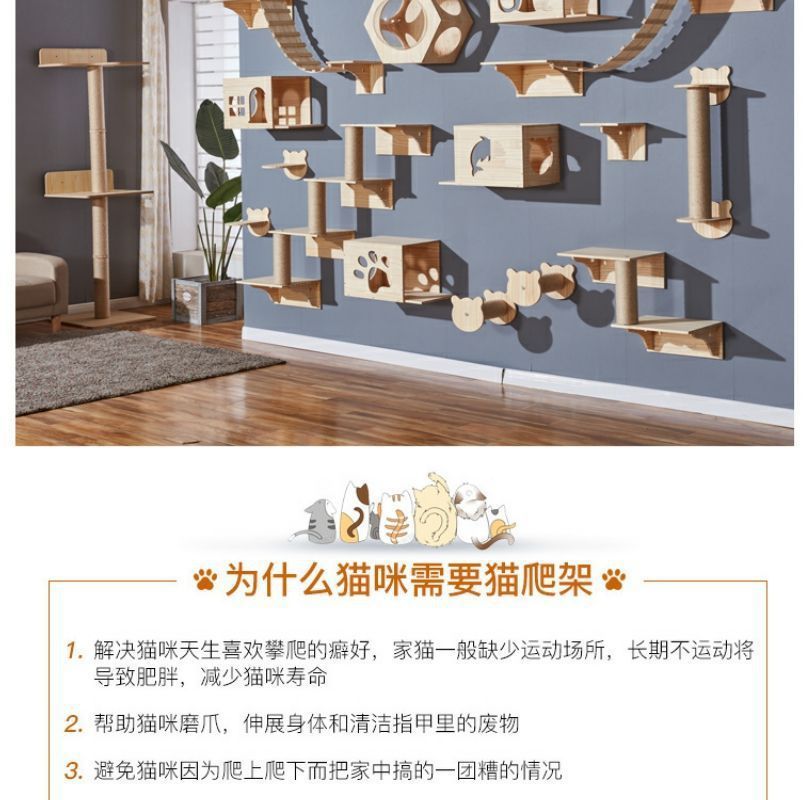 벽걸이형 고양이 클라이밍 프레임, 벽걸이형 원목 고양이 둥지 점프 플랫폼, 고양이 스크래치 컬럼, 고양이 스크래치 보드, 고양이 벽 에어 코일리지스토어 가기