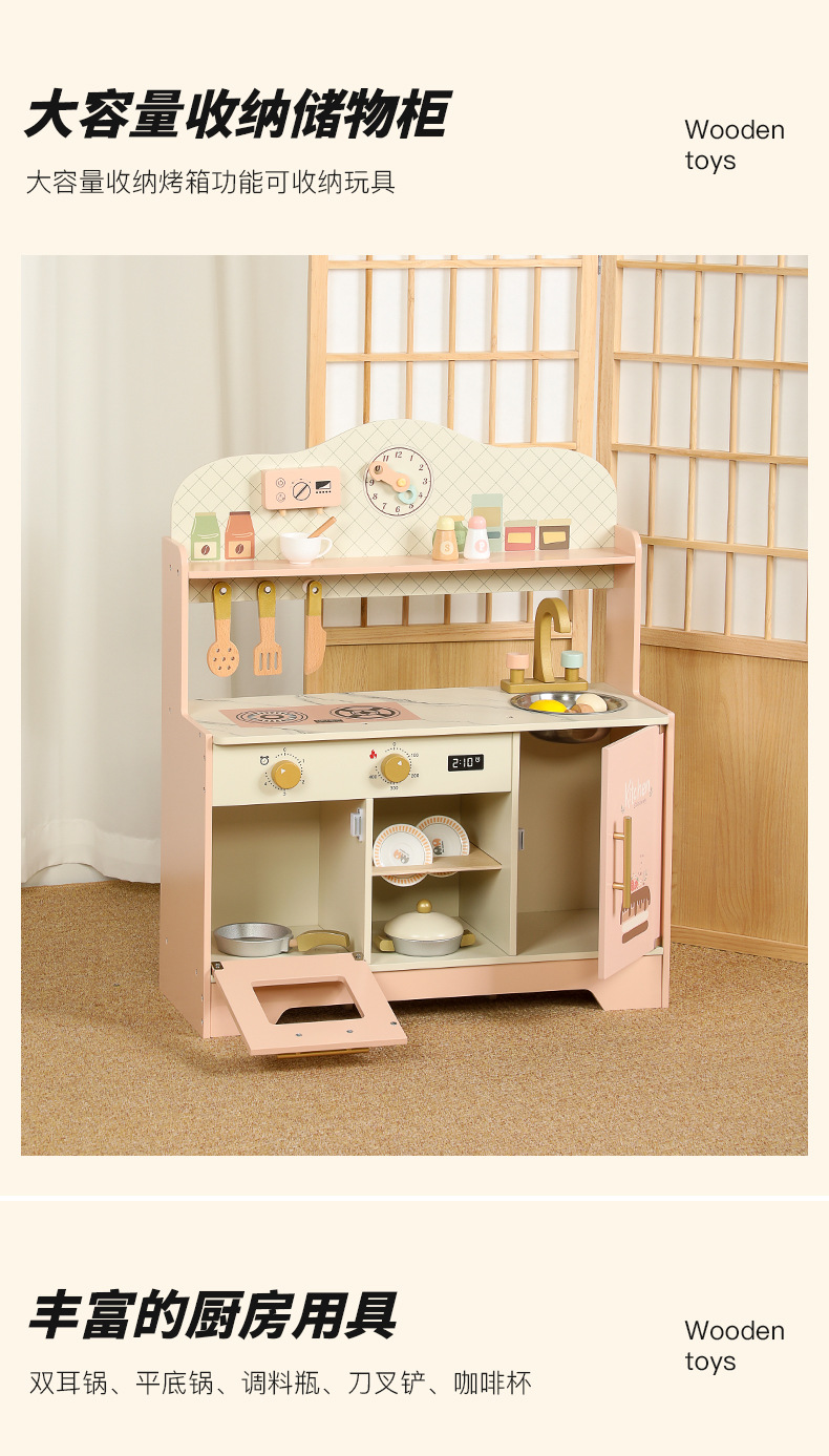 아기 나무 시뮬레이션 요리 스토브 주방 장면 영역 시뮬레이션 세트 놀이 집 전자 레인지 주방 장난감