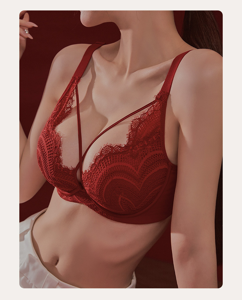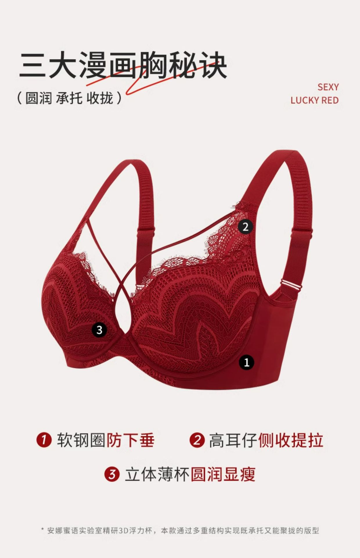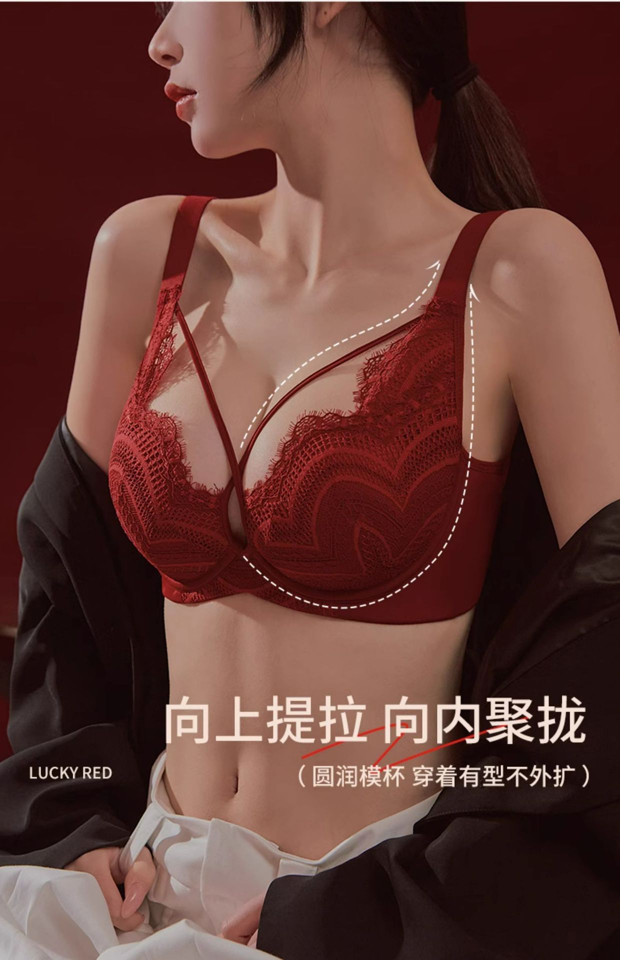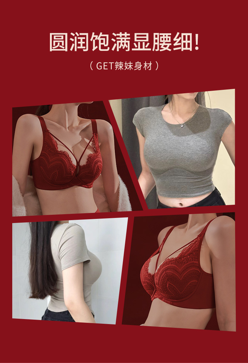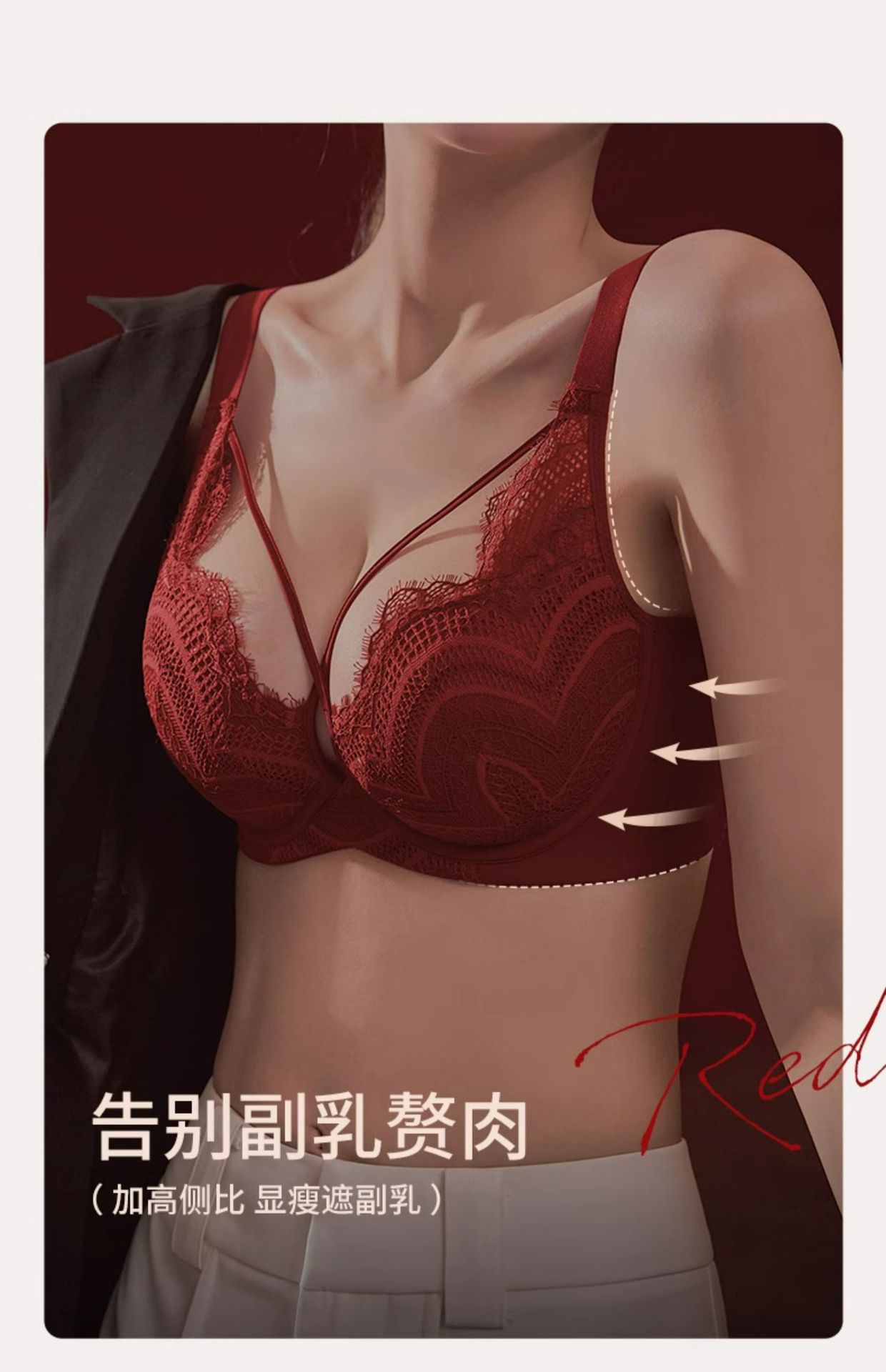 붉은 동물의 해 처짐 방지 큰 가슴 작은 레이스 속옷 조절 가능한 푸시 업 프렌치 섹시 플러스 사이즈 브라스토어 가기