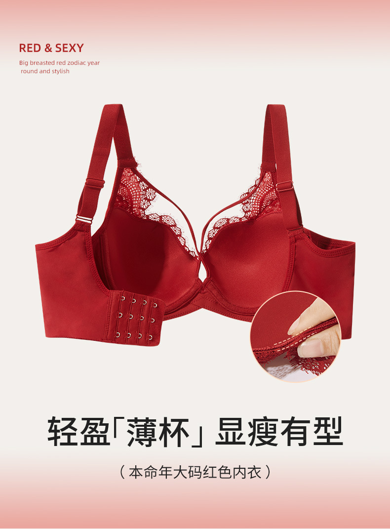 붉은 동물의 해 처짐 방지 큰 가슴 작은 레이스 속옷 조절 가능한 푸시 업 프렌치 섹시 플러스 사이즈 브라