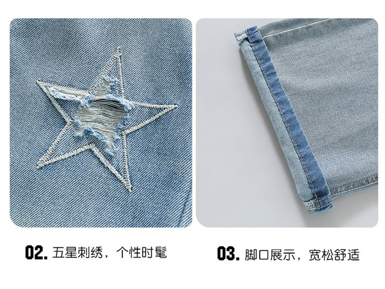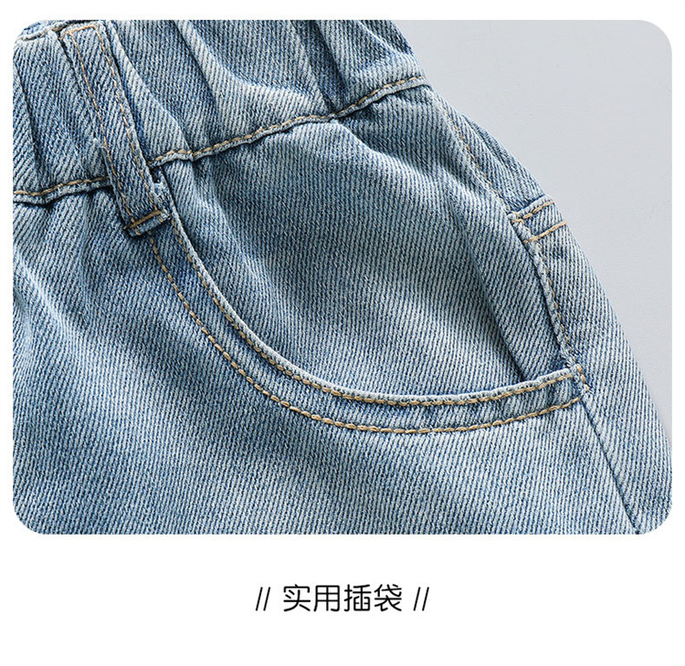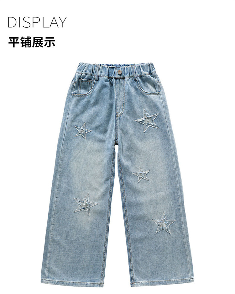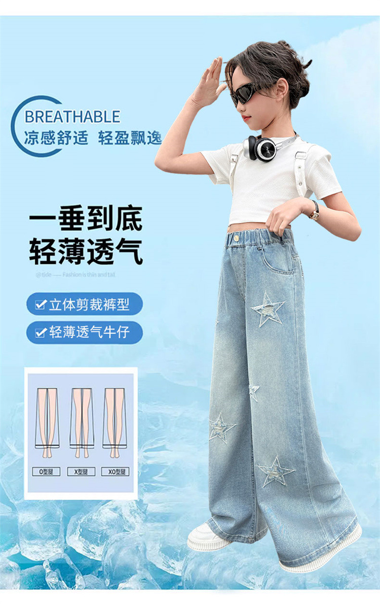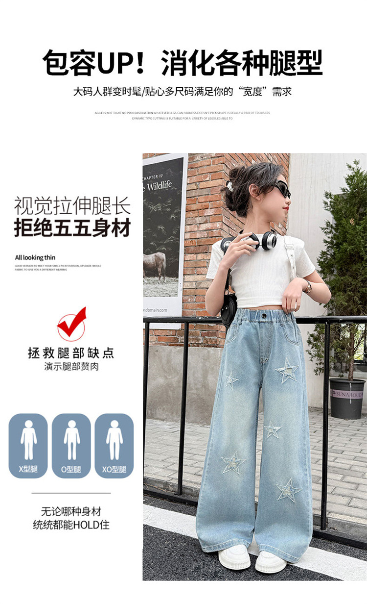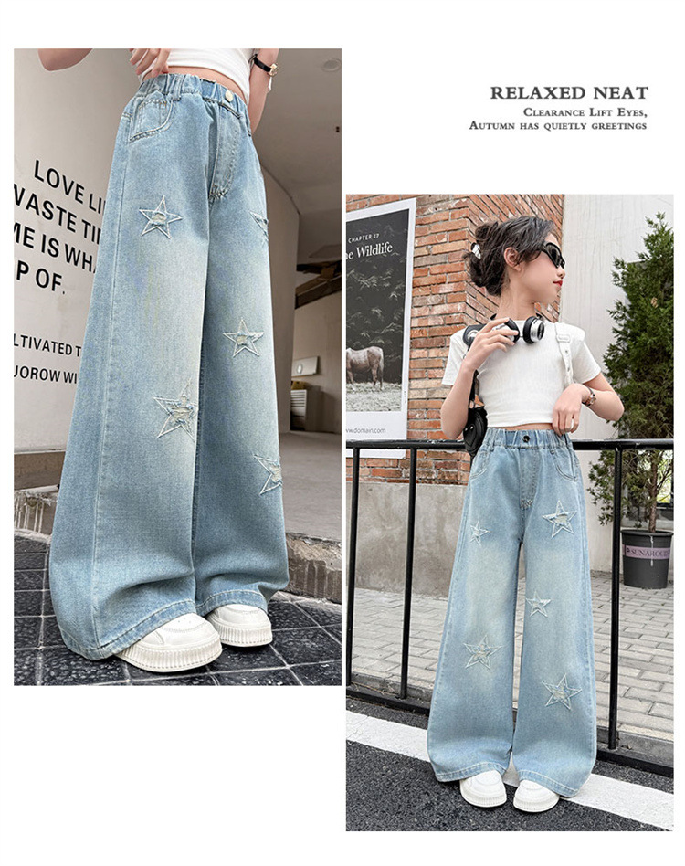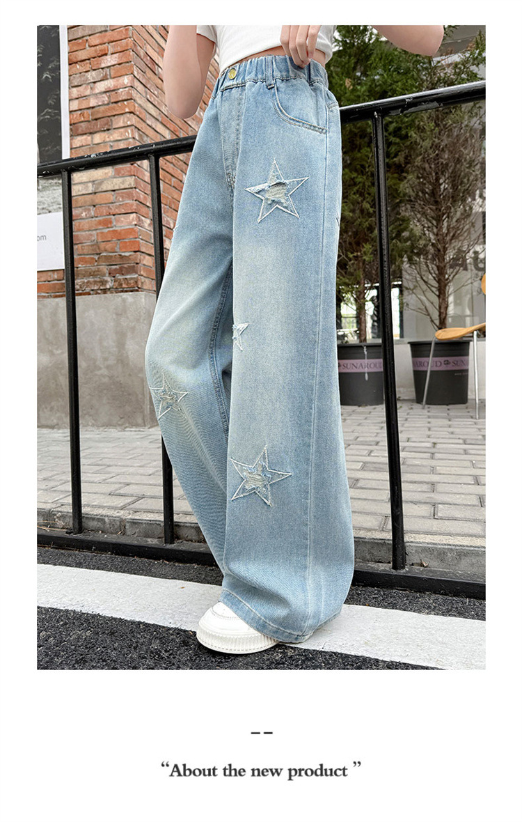 여자 여름 청바지 2025 새로운 어린이 패션 캐주얼 바지 여자 여름 한국 스타일 와이드 레그 팬츠 유행스토어 가기