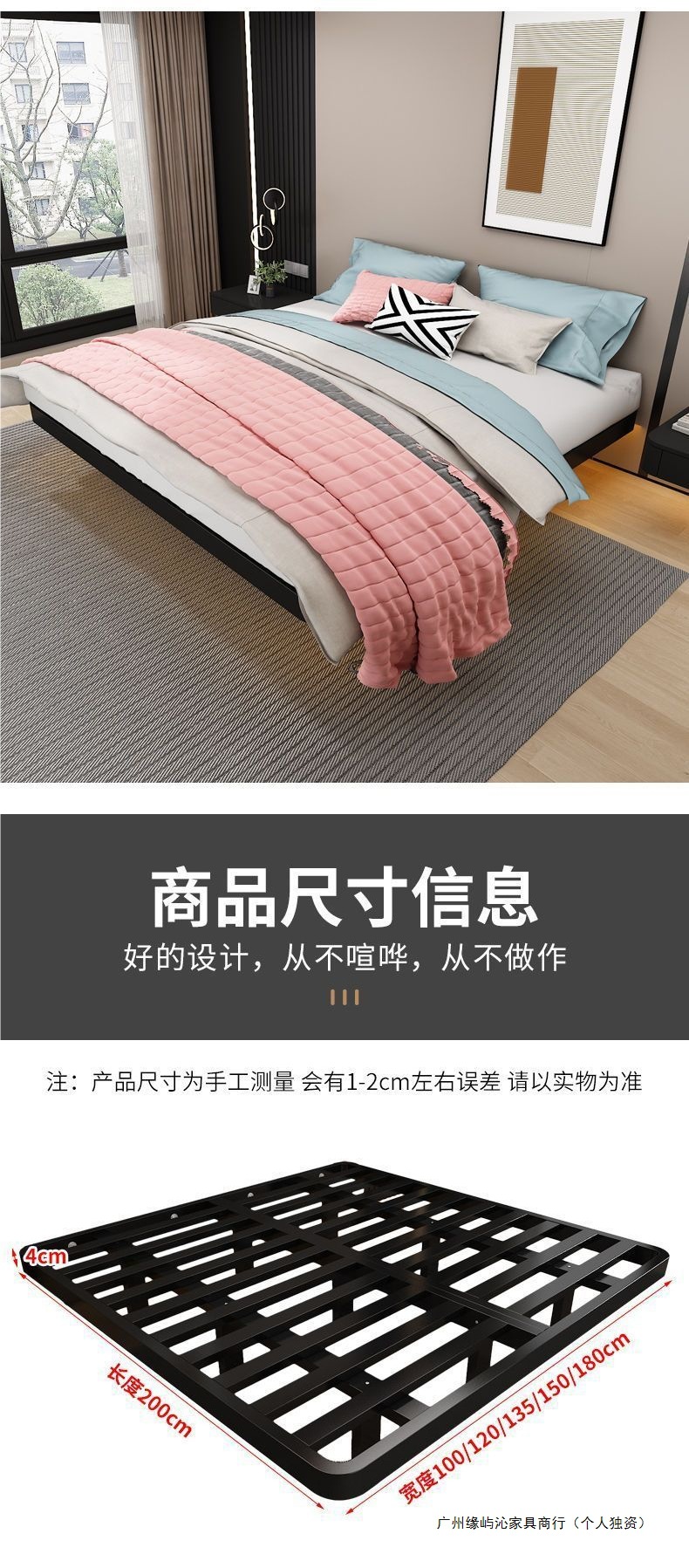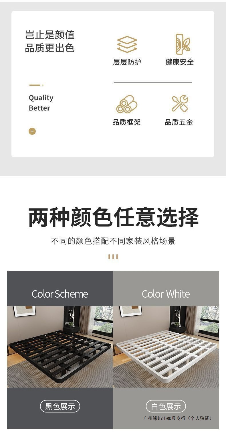 공중부양 침대 프레임, 전체 철제, 간단한 마스터 침실, 침대 옆이 없는 철제 침대 프레임, 더블 침대, 성인 아파트 임대 주택 철제 프레임 침대스토어 가기