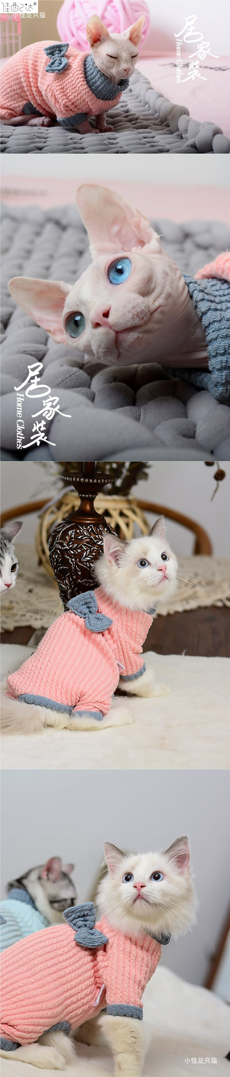 애완동물 고양이 옷, 가을 겨울 고양이 바닥옷, 네발옷, 털이 없는 고양이, 브리티시 쇼트헤어 새끼 고양이, 시암 고양이 따뜻한 옷스토어 가기