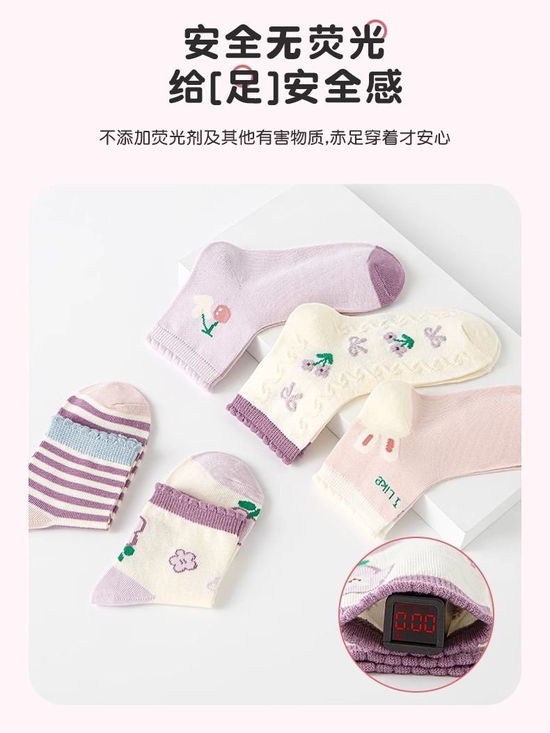 보라색 아이리스 여섯 손가락 쥐 어린이 양말 소년과 소녀 아기 봄과 가을 스타일 중형 및 대형 어린이 얇은 레이스 중간 튜브 양말스토어 가기