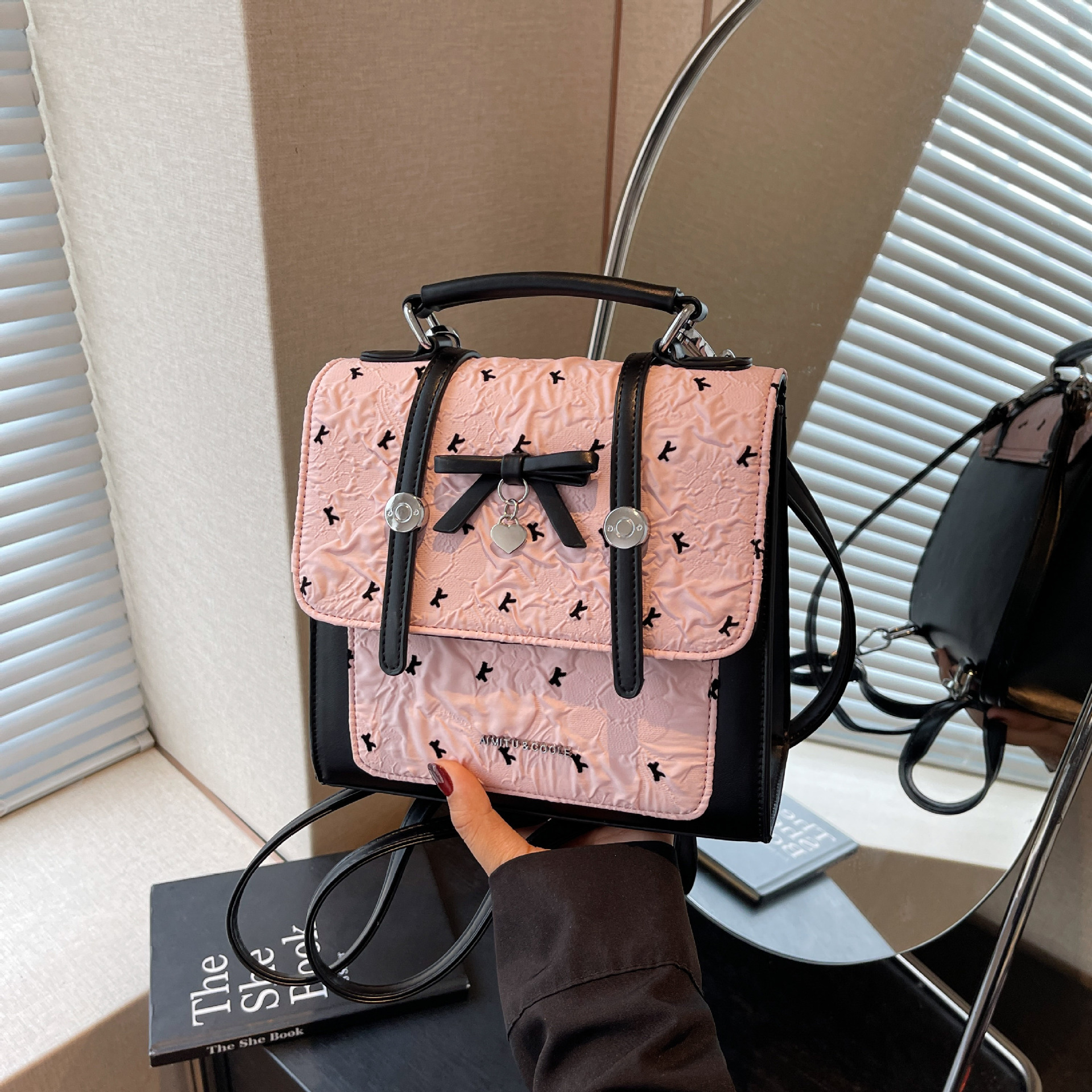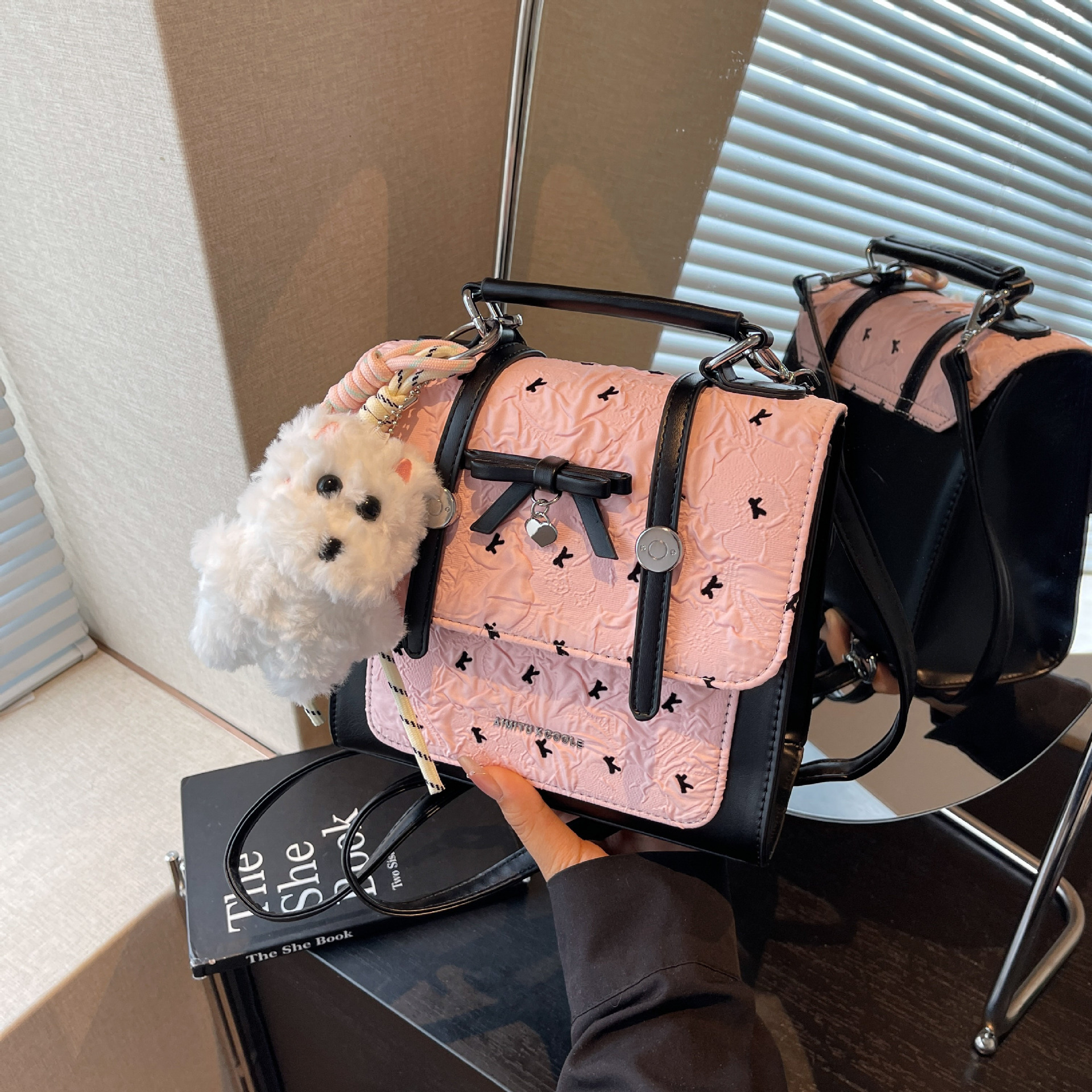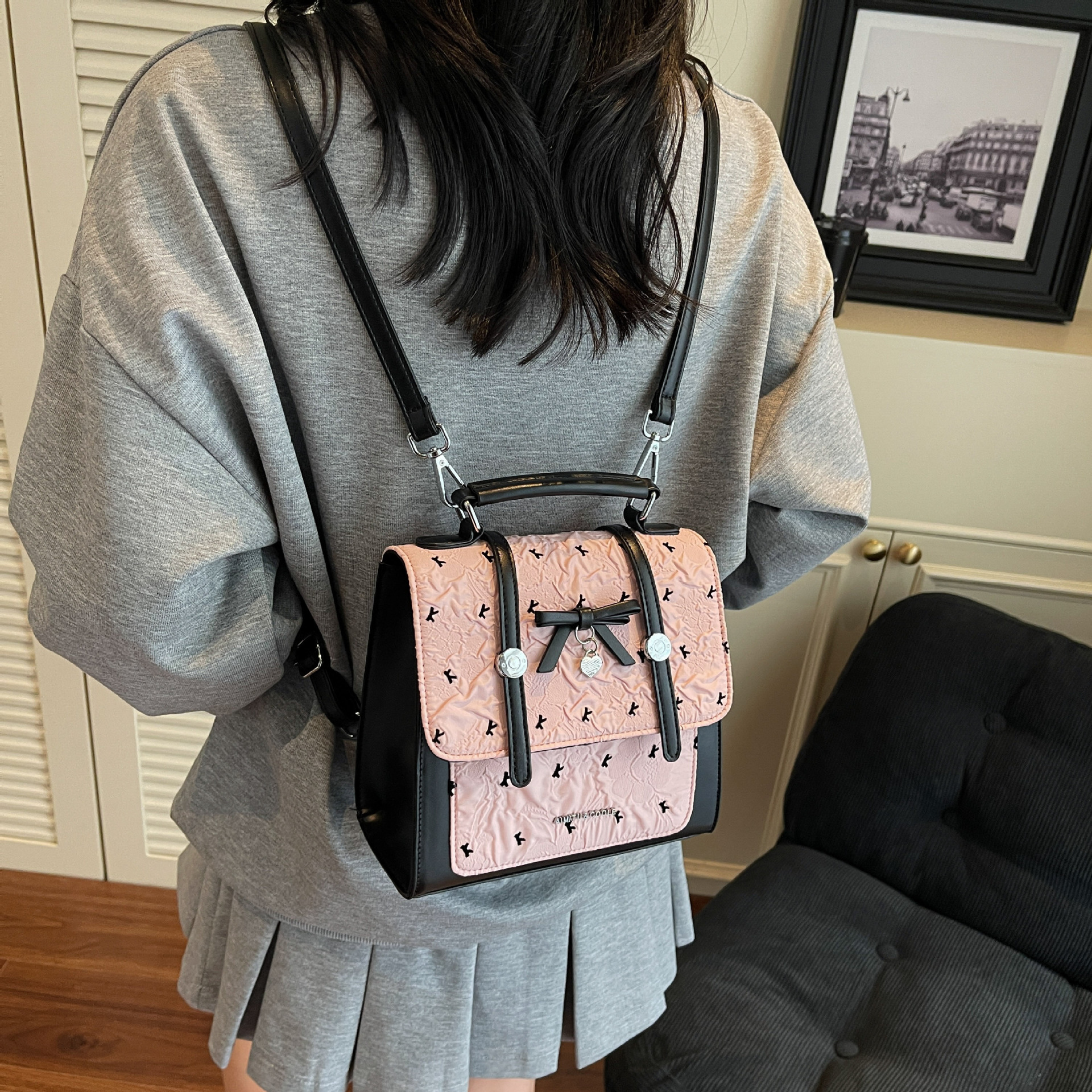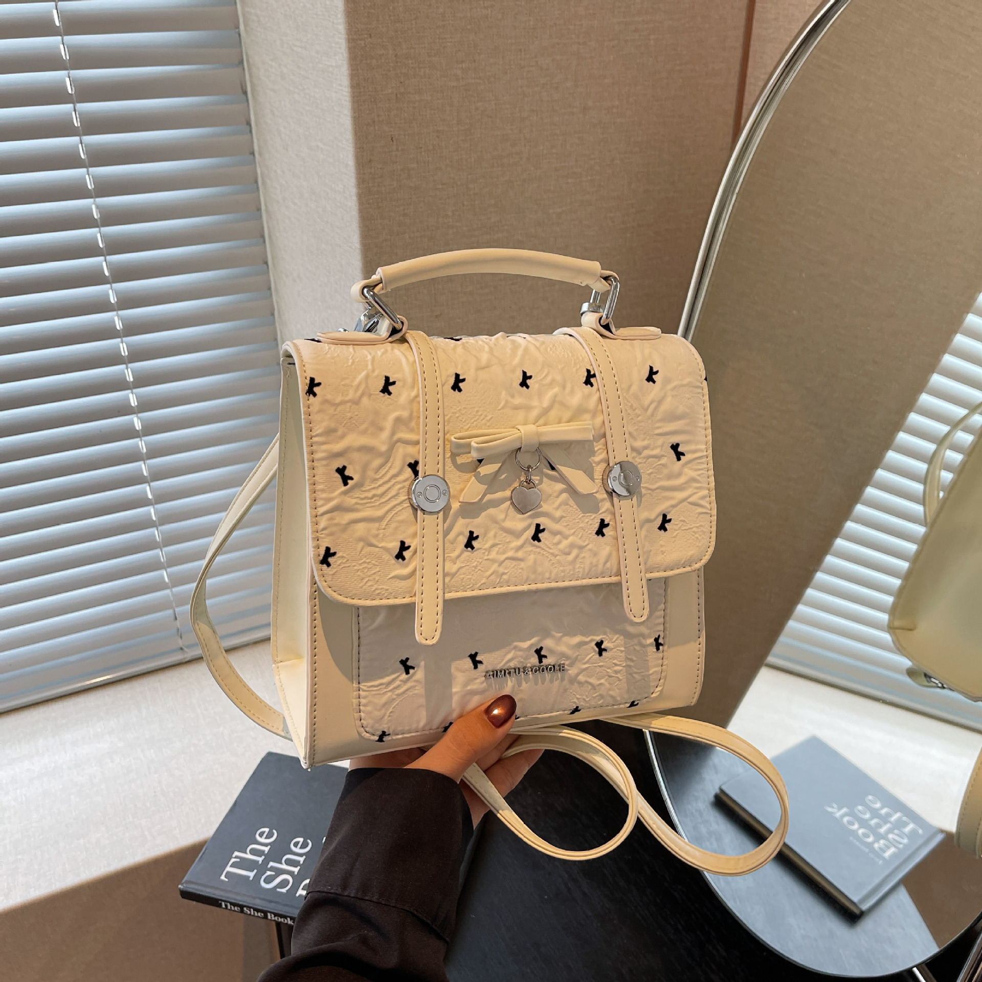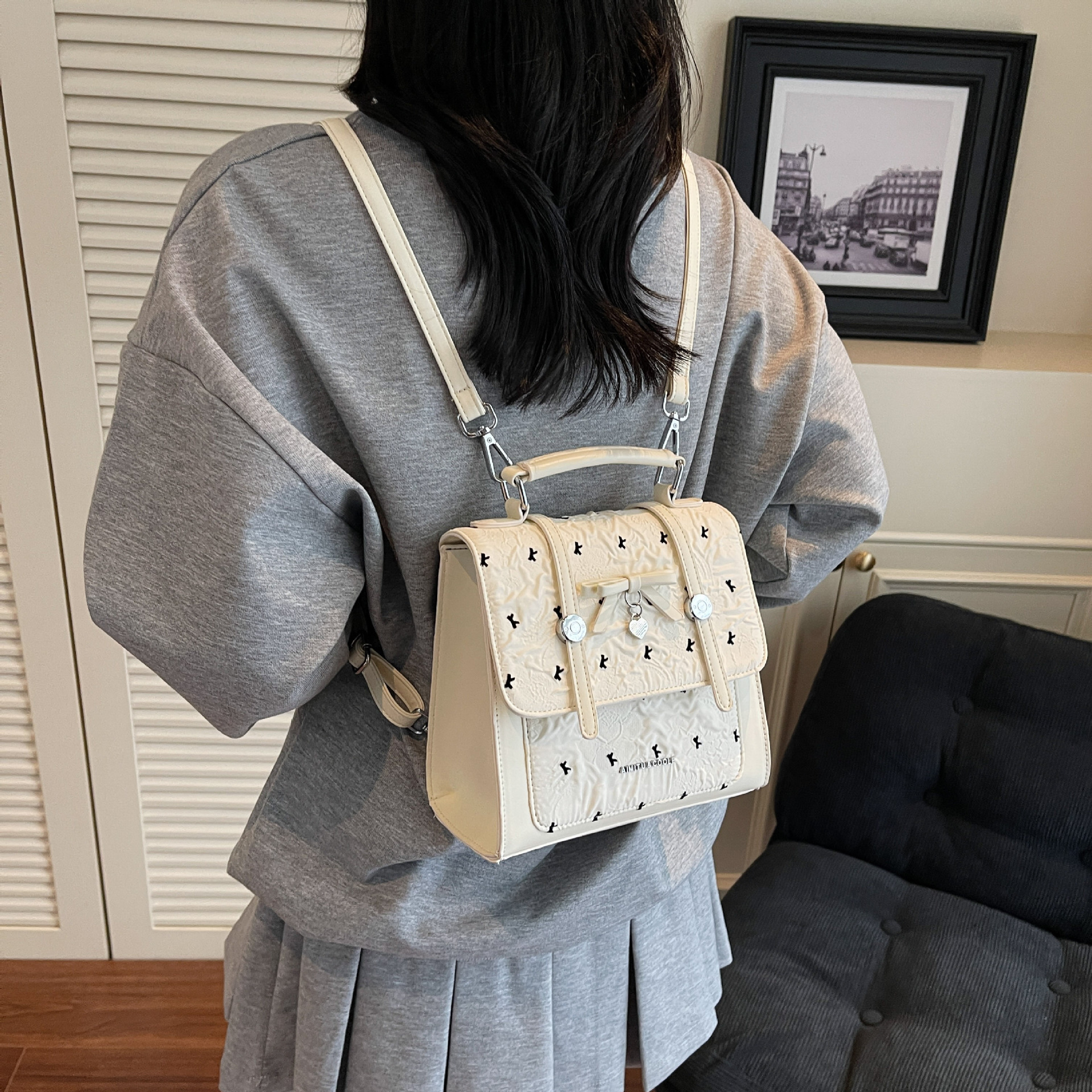 에이미 토끼 여성용 가방 2025 새로운 패션 다재다능한 트렌디 문학적이고 간단한 대학 스타일 일일 휴대용 배낭스토어 가기