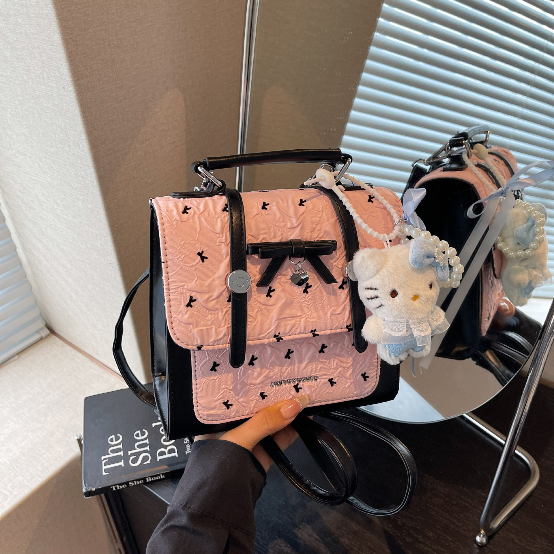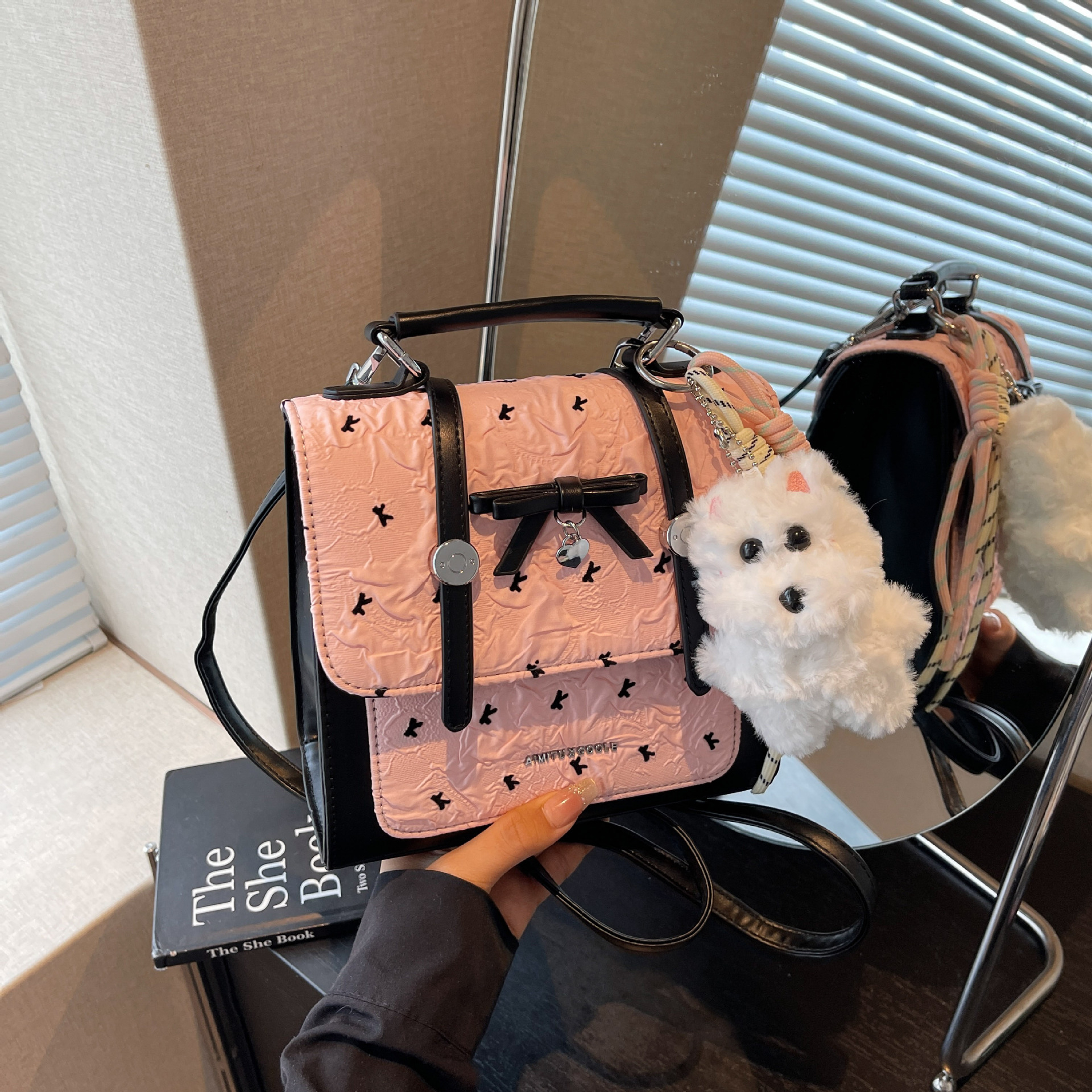 에이미 토끼 여성용 가방 2025 새로운 패션 다재다능한 트렌디 문학적이고 간단한 대학 스타일 일일 휴대용 배낭