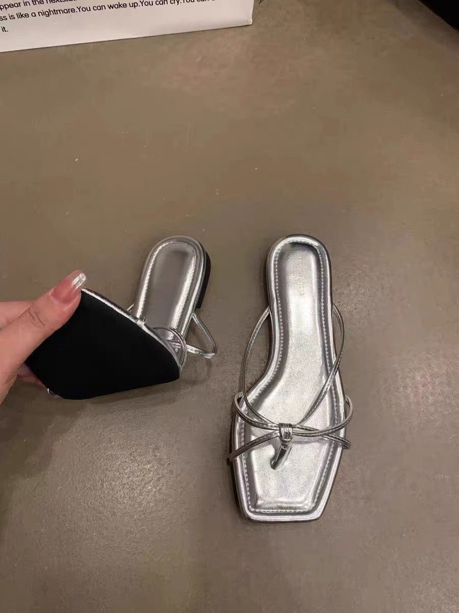 2025 새로운 프랑스 스타일 플랫 플립 플롭 신발 요정 신발 여성 여름 해변 샌들 실버 샌들스토어 가기
