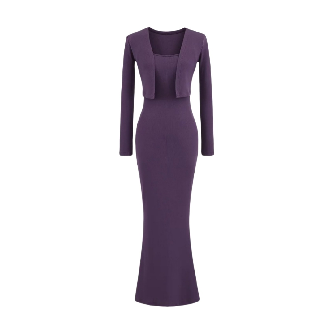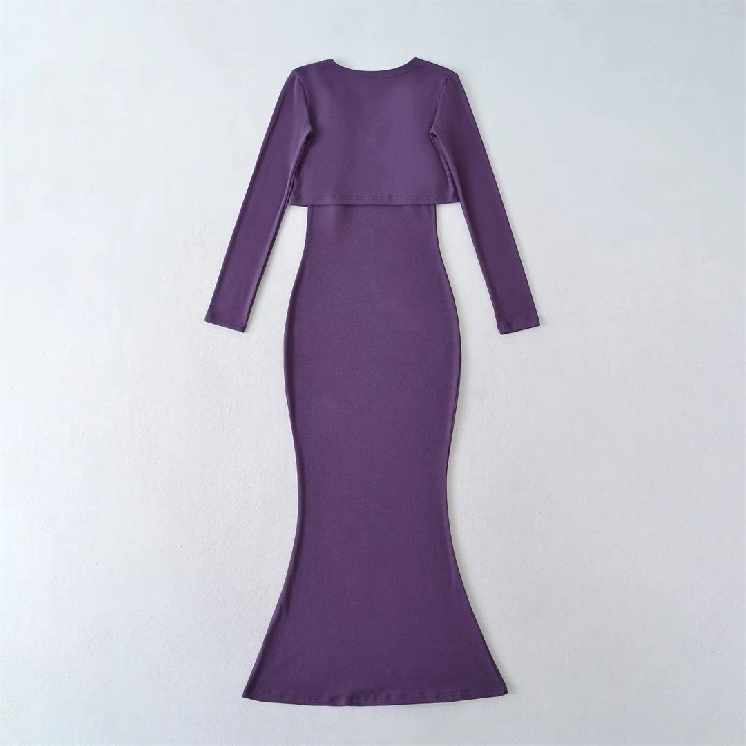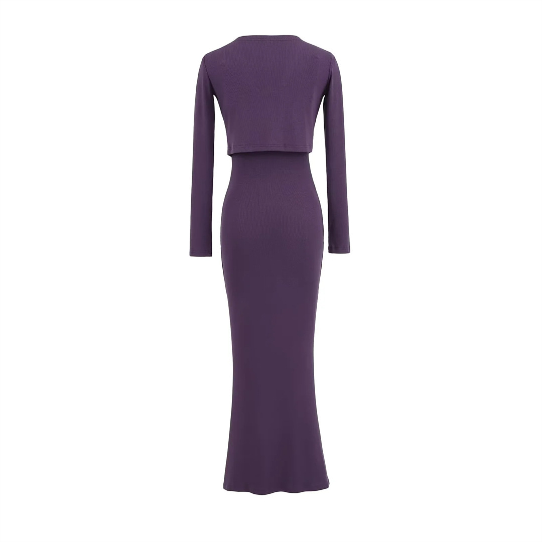 순수한 욕망 섹시한 탄성 슬림핏 힙 커버 피쉬테일 롱 스커트 여성용 버튼리스 긴팔 숄 탑 투피스 세트스토어 가기