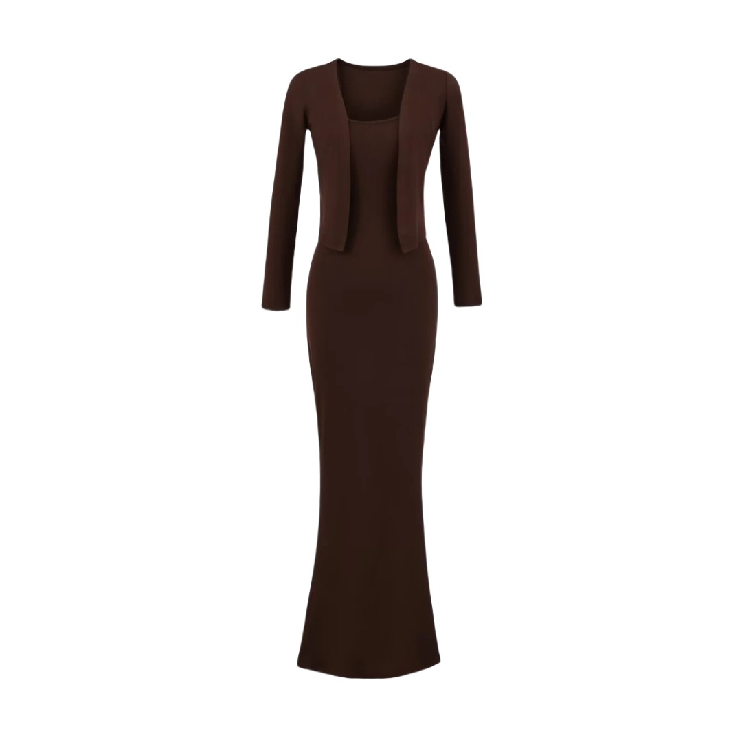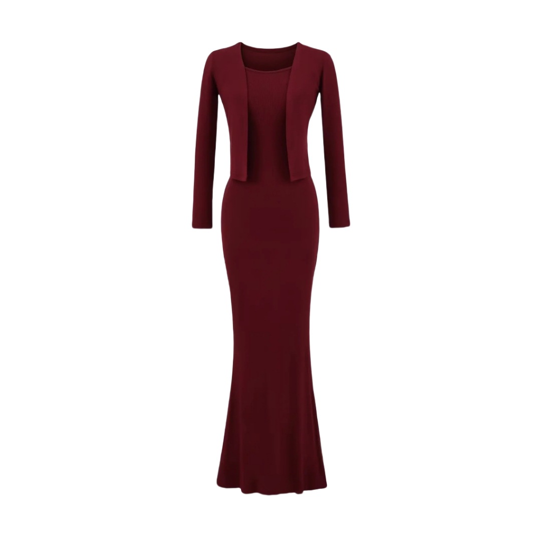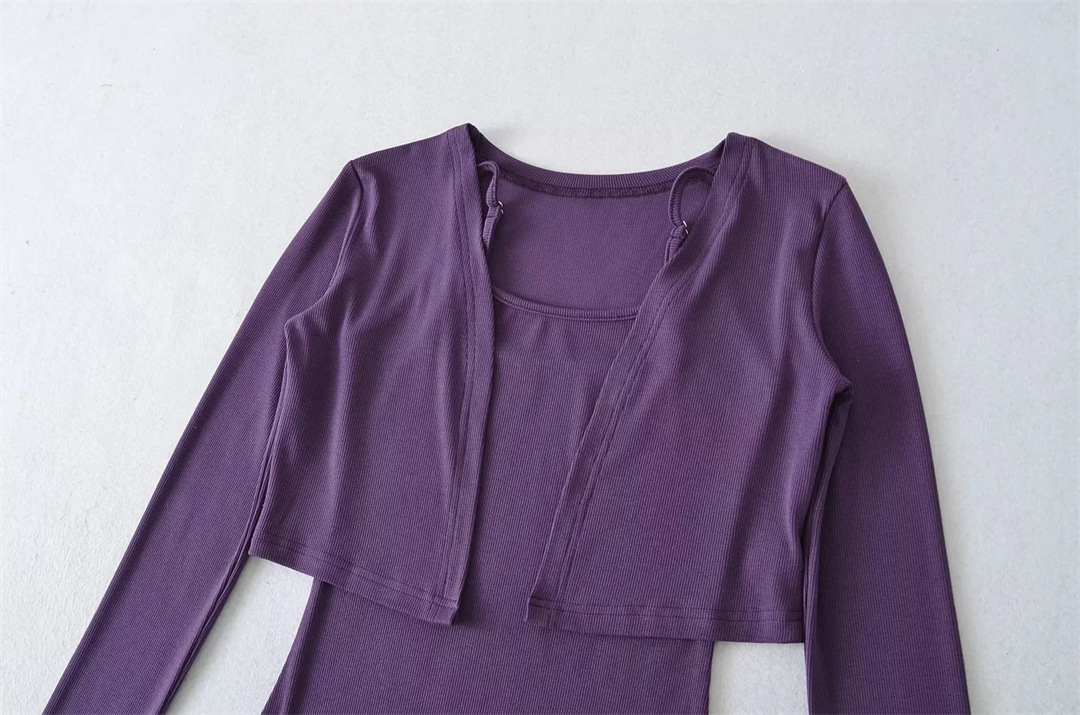 순수한 욕망 섹시한 탄성 슬림핏 힙 커버 피쉬테일 롱 스커트 여성용 버튼리스 긴팔 숄 탑 투피스 세트스토어 가기