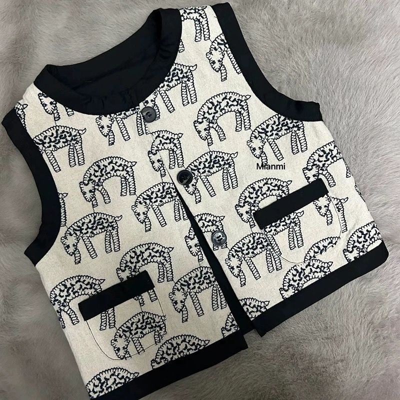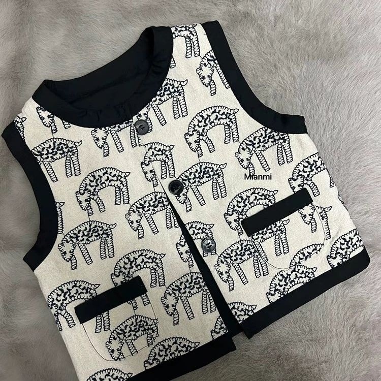 한국 어린이 남녀공용 프린트 조끼 새로운 2025 봄 여름 새로운 스타일 조끼 소년 소녀 외투