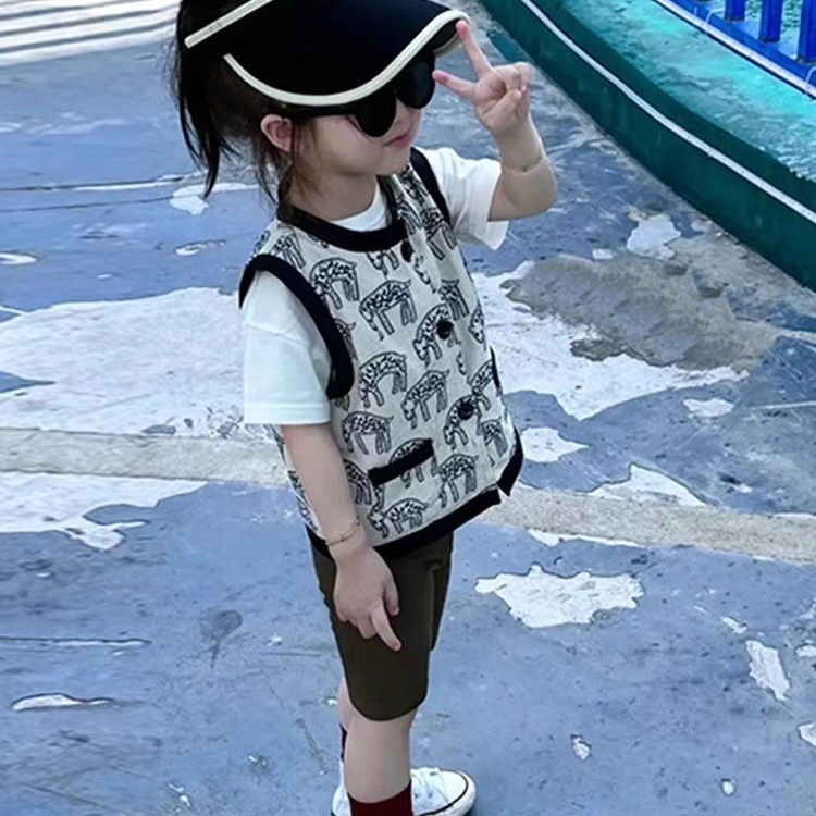 한국 어린이 남녀공용 프린트 조끼 새로운 2025 봄 여름 새로운 스타일 조끼 소년 소녀 외투스토어 가기