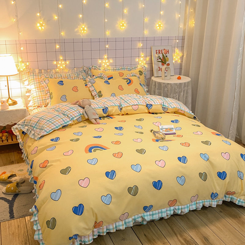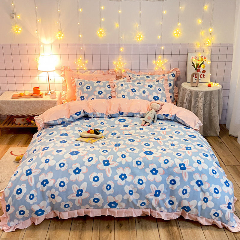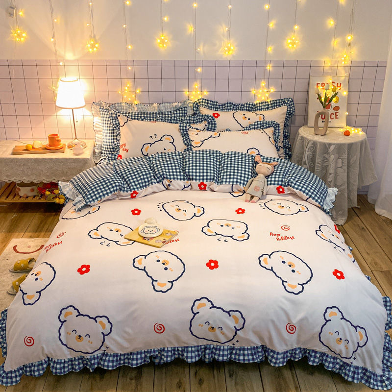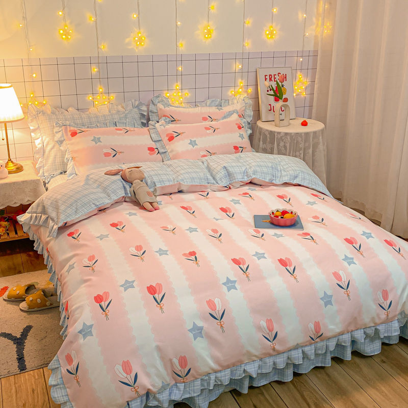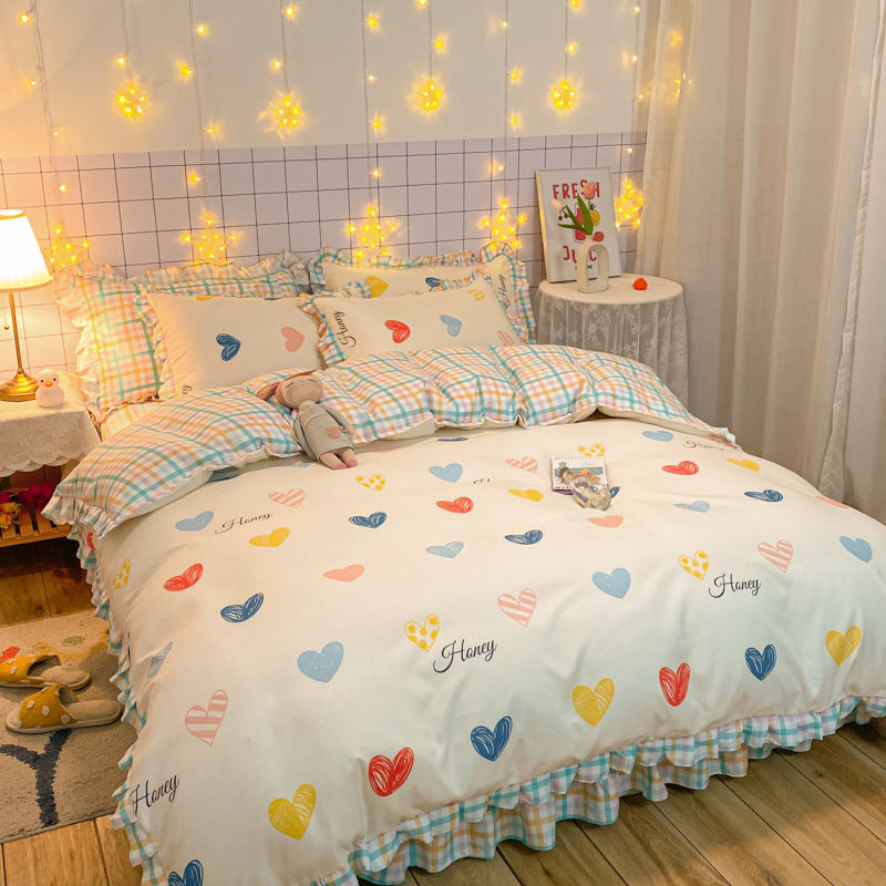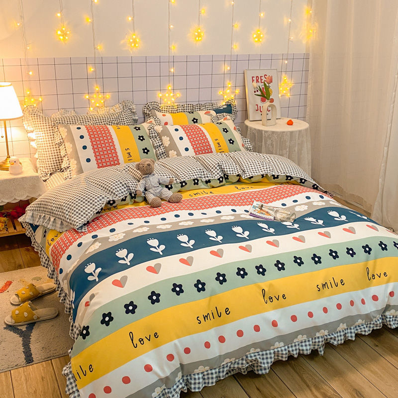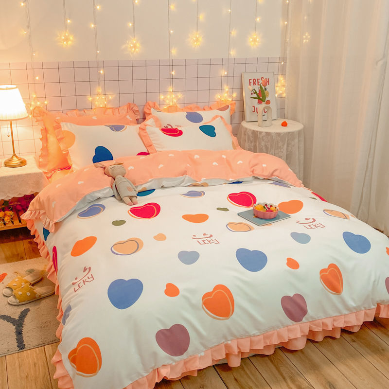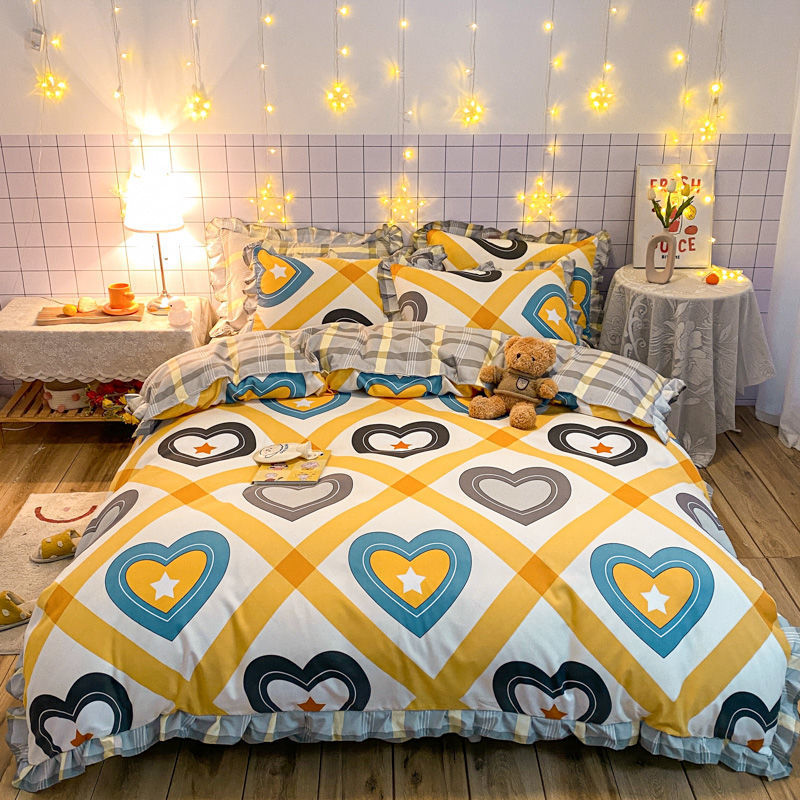 3 조각 세트 인터넷 유행 침대 스커트 4 조각 세트 한국 스타일 공주 스타일 침대 커버 퀼트 커버 소녀의 심장 침대보 침구 키트