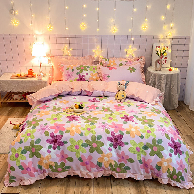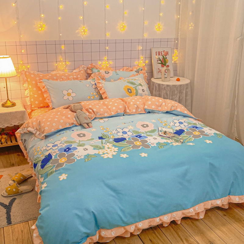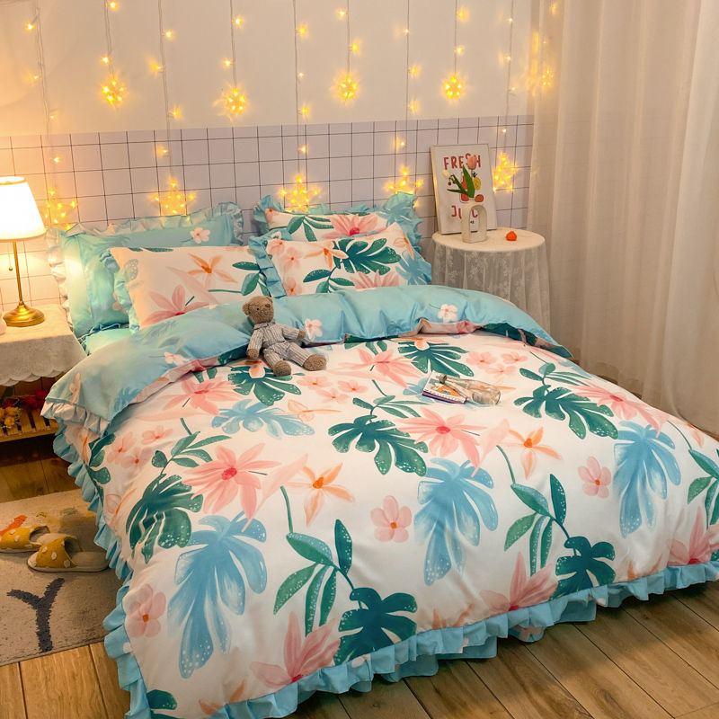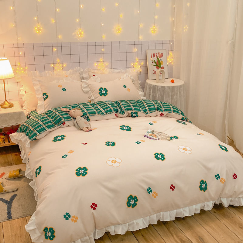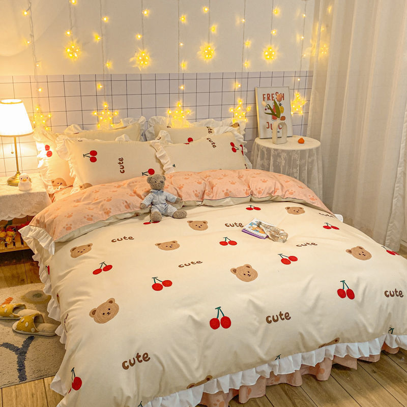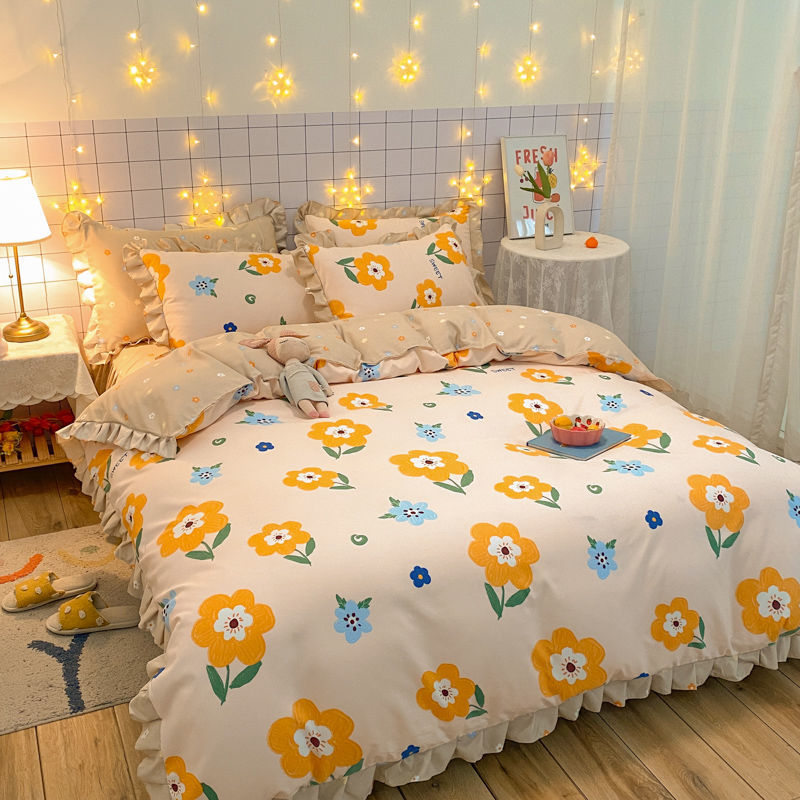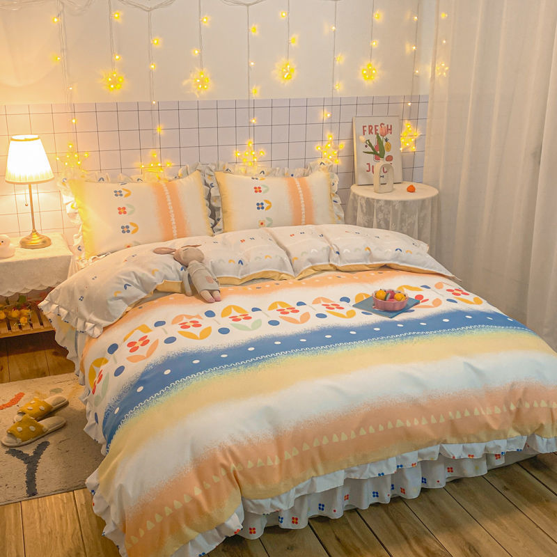 3 조각 세트 인터넷 유행 침대 스커트 4 조각 세트 한국 스타일 공주 스타일 침대 커버 퀼트 커버 소녀의 심장 침대보 침구 키트