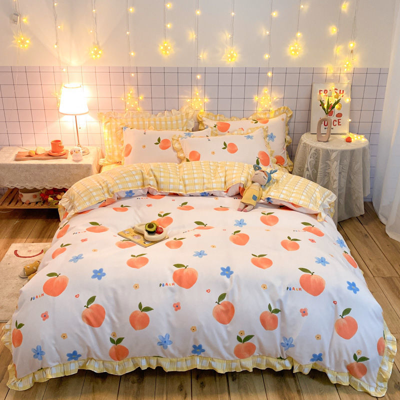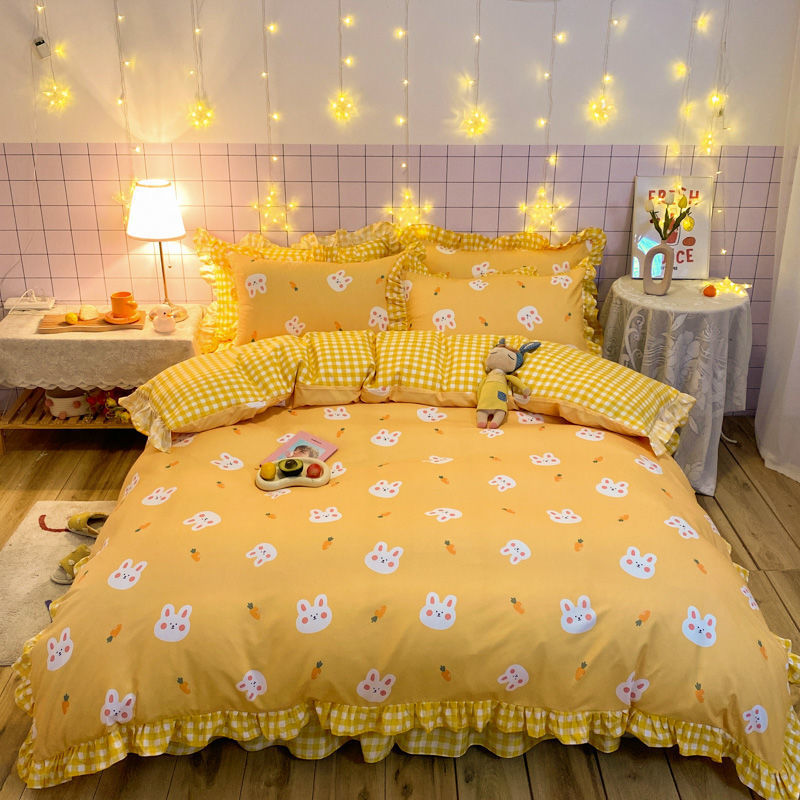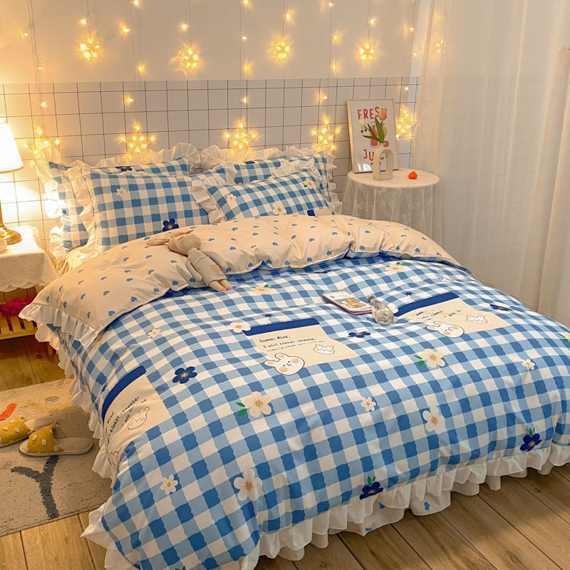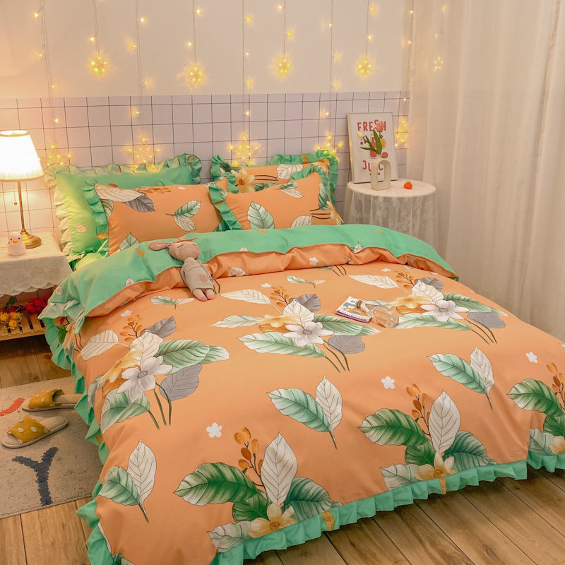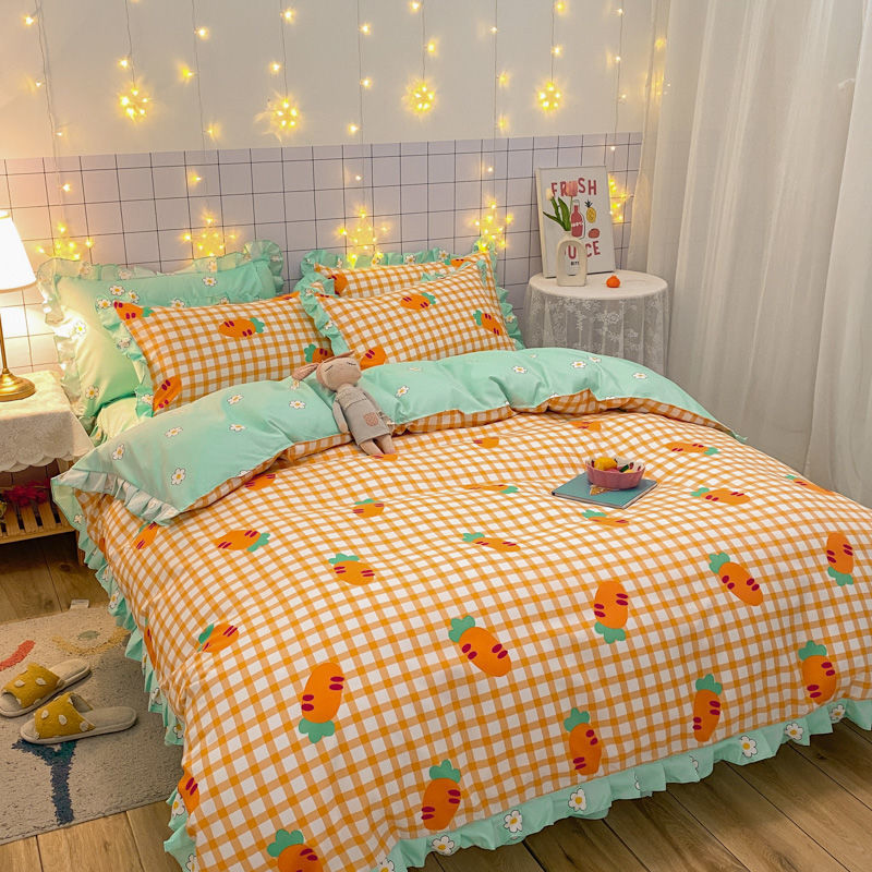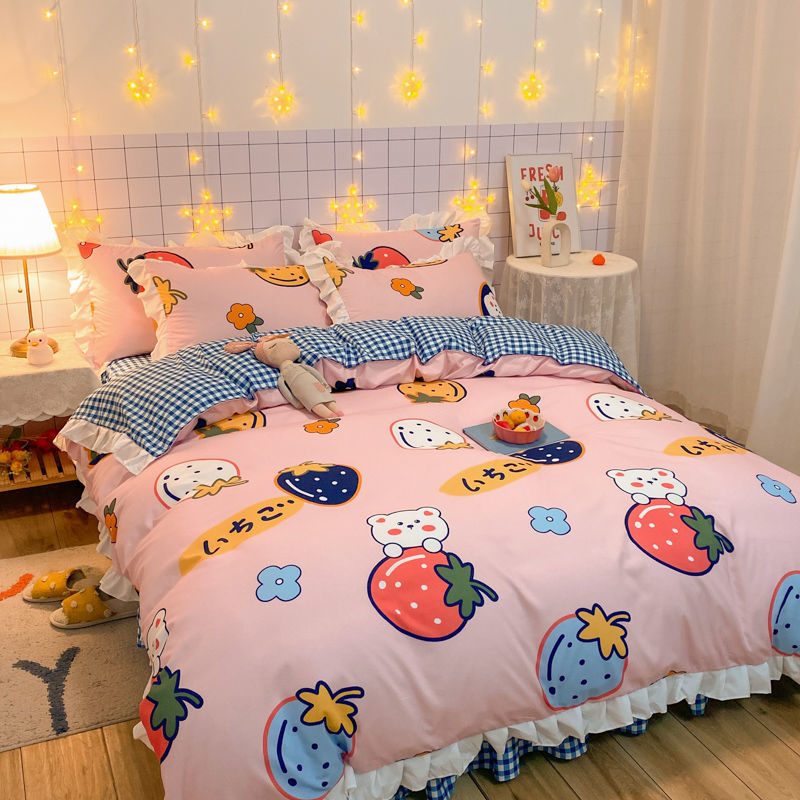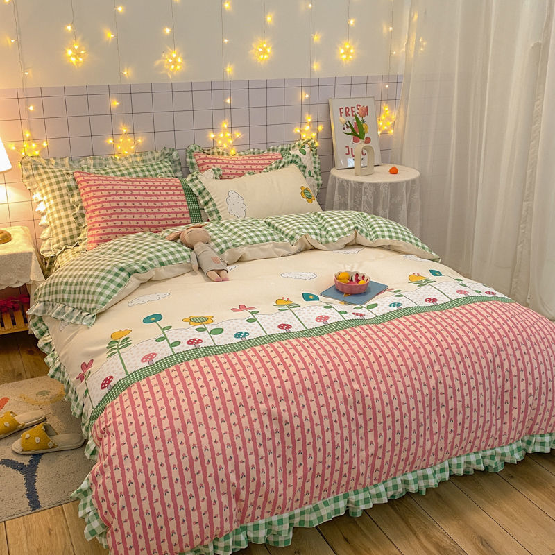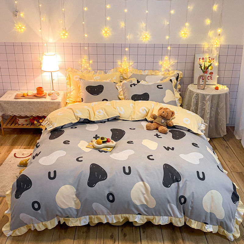 3 조각 세트 인터넷 유행 침대 스커트 4 조각 세트 한국 스타일 공주 스타일 침대 커버 퀼트 커버 소녀의 심장 침대보 침구 키트