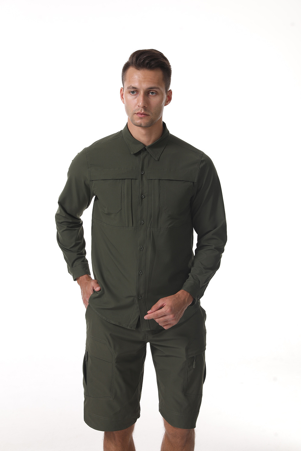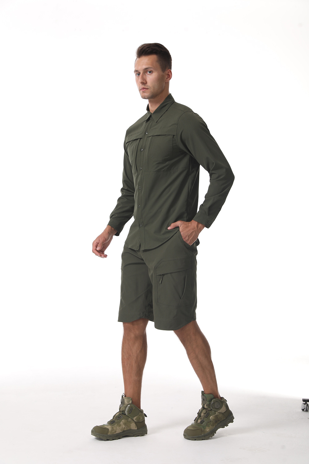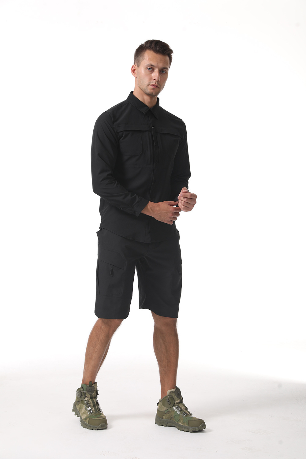 ESDY 신상 남성 여름 얇은 아웃도어 스포츠 사이클링 의류 세트 통기성 다용도 셔츠 바지 도매스토어 가기