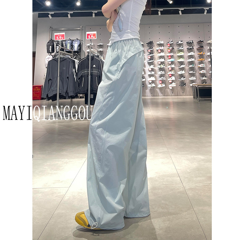 아이스 블루 속건성 스포츠 바지 여성 여름 얇은 태양 보호 루즈 캐주얼 바지 슬림 스트레이트 오버올 하이킹 바지스토어 가기