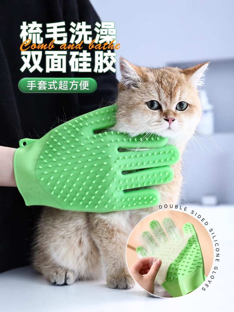 새로운 양면 고양이 애완 동물 장갑 실리콘 개 청소 마사지 목욕 장갑 브러시 헤어 제거 손바닥 브러시