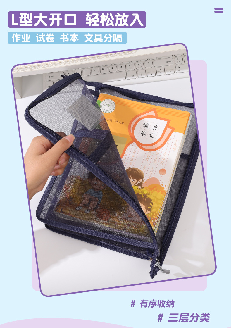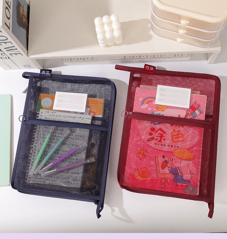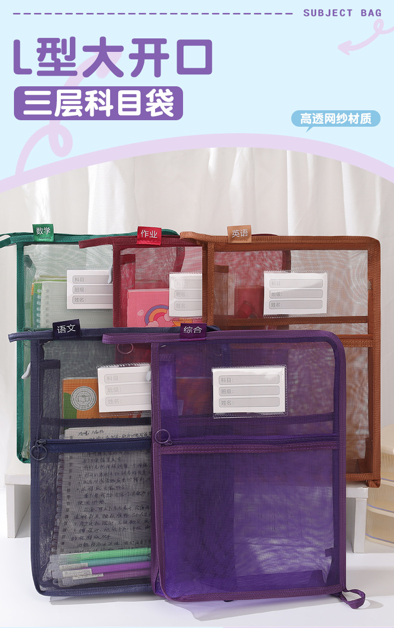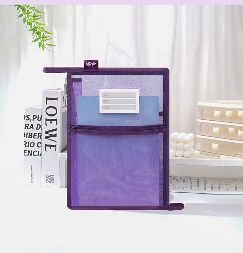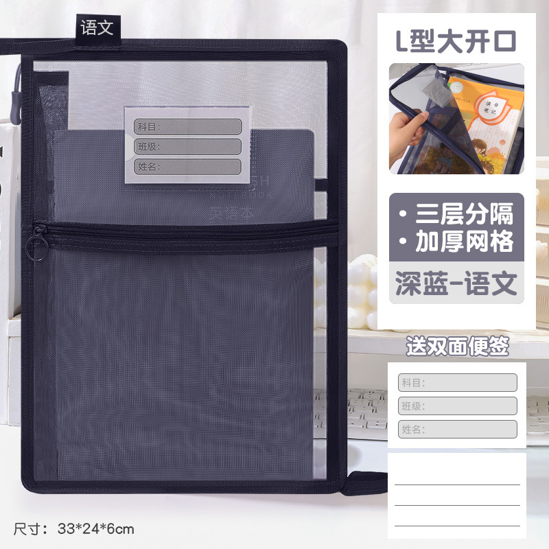 창조적 인 A4 더블 레이어 나일론 메쉬 원사 주제 가방 L 자형 대용량 종이 데이터 정렬 가방 사무실 파일 가방