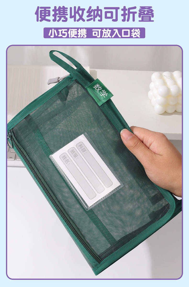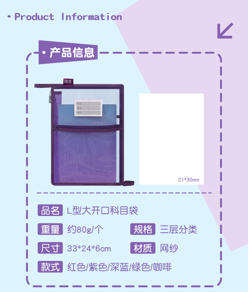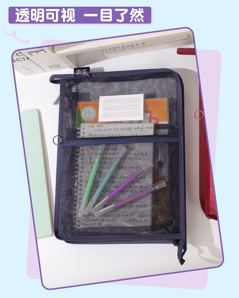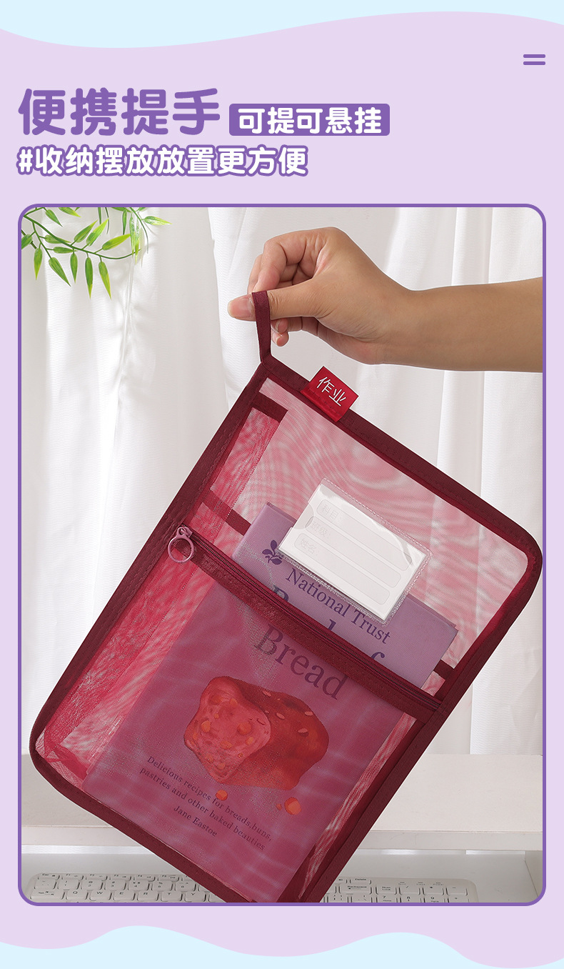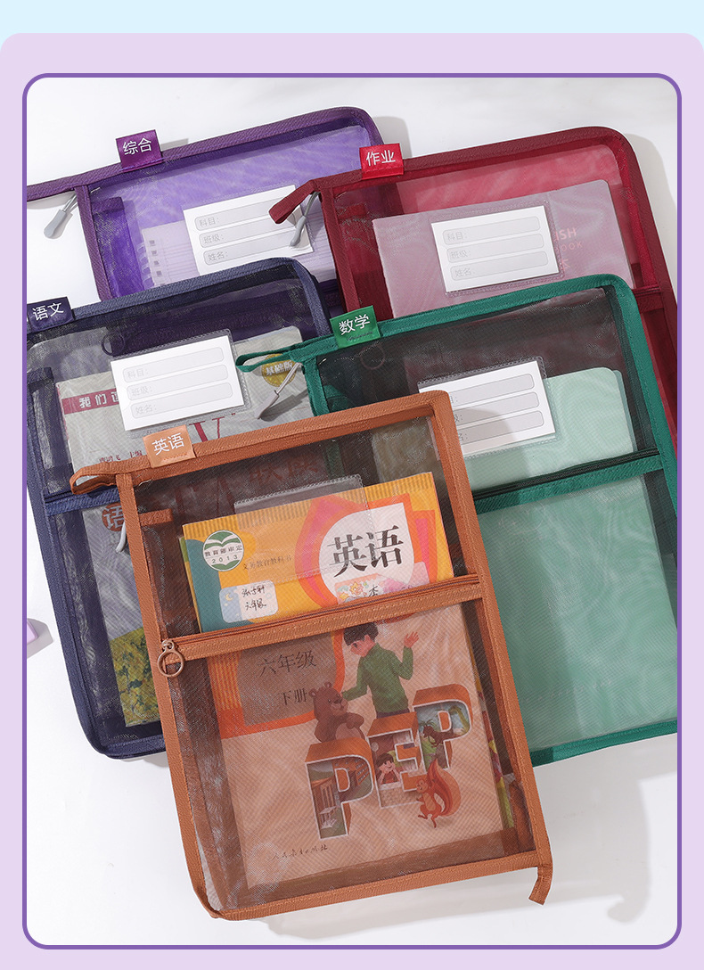 창조적 인 A4 더블 레이어 나일론 메쉬 원사 주제 가방 L 자형 대용량 종이 데이터 정렬 가방 사무실 파일 가방