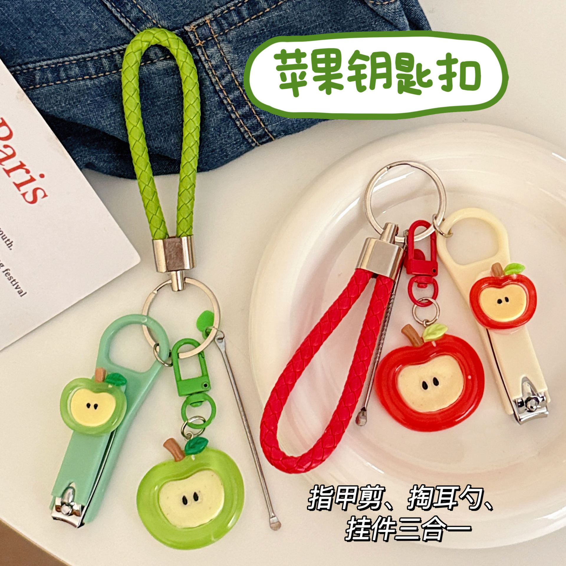 창의적인 사과 손톱깎이, 귀엽고 편리한 휴대용 펜던트, 학생용 가정용 손톱깎이, 귀이개 세트 도구스토어 가기
