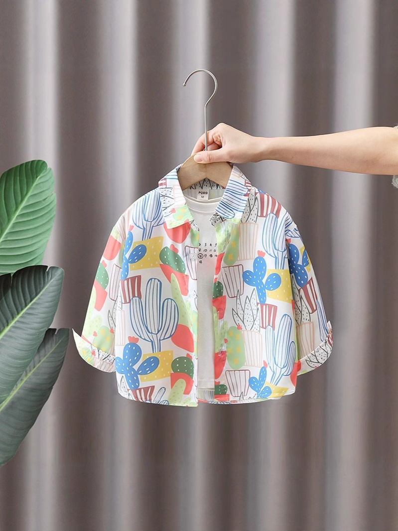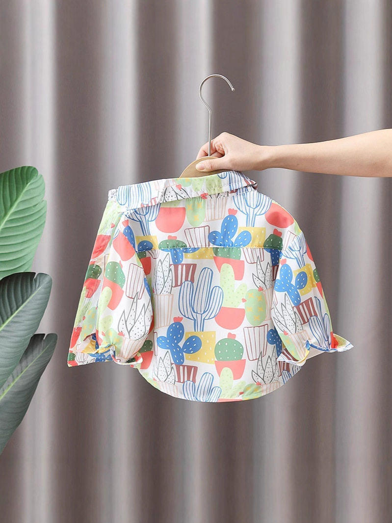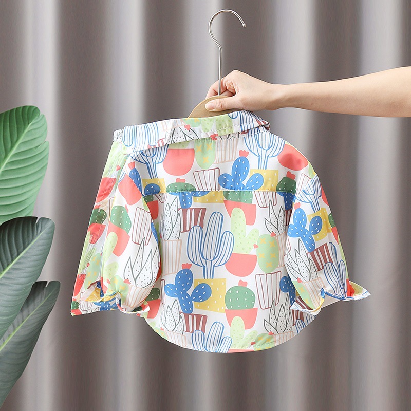 소년과 소녀를위한 어린이 꽃 셔츠 여름 캐주얼 쉬폰 셔츠 아기 봄, 가을 어린이를위한 얇은 긴팔 자외선 차단 의류