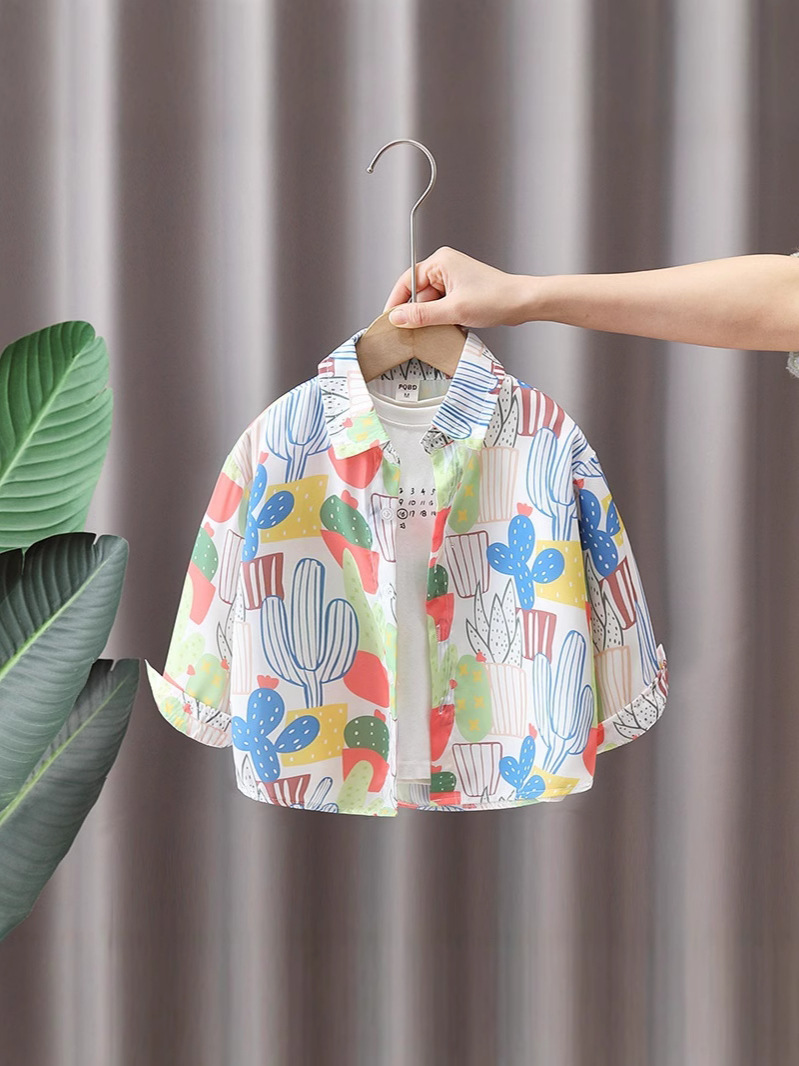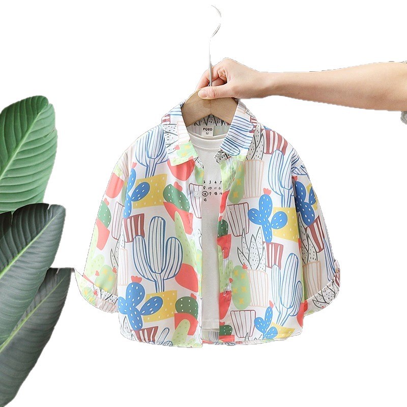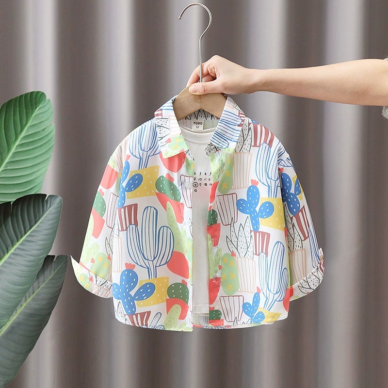 소년과 소녀를위한 어린이 꽃 셔츠 여름 캐주얼 쉬폰 셔츠 아기 봄, 가을 어린이를위한 얇은 긴팔 자외선 차단 의류스토어 가기