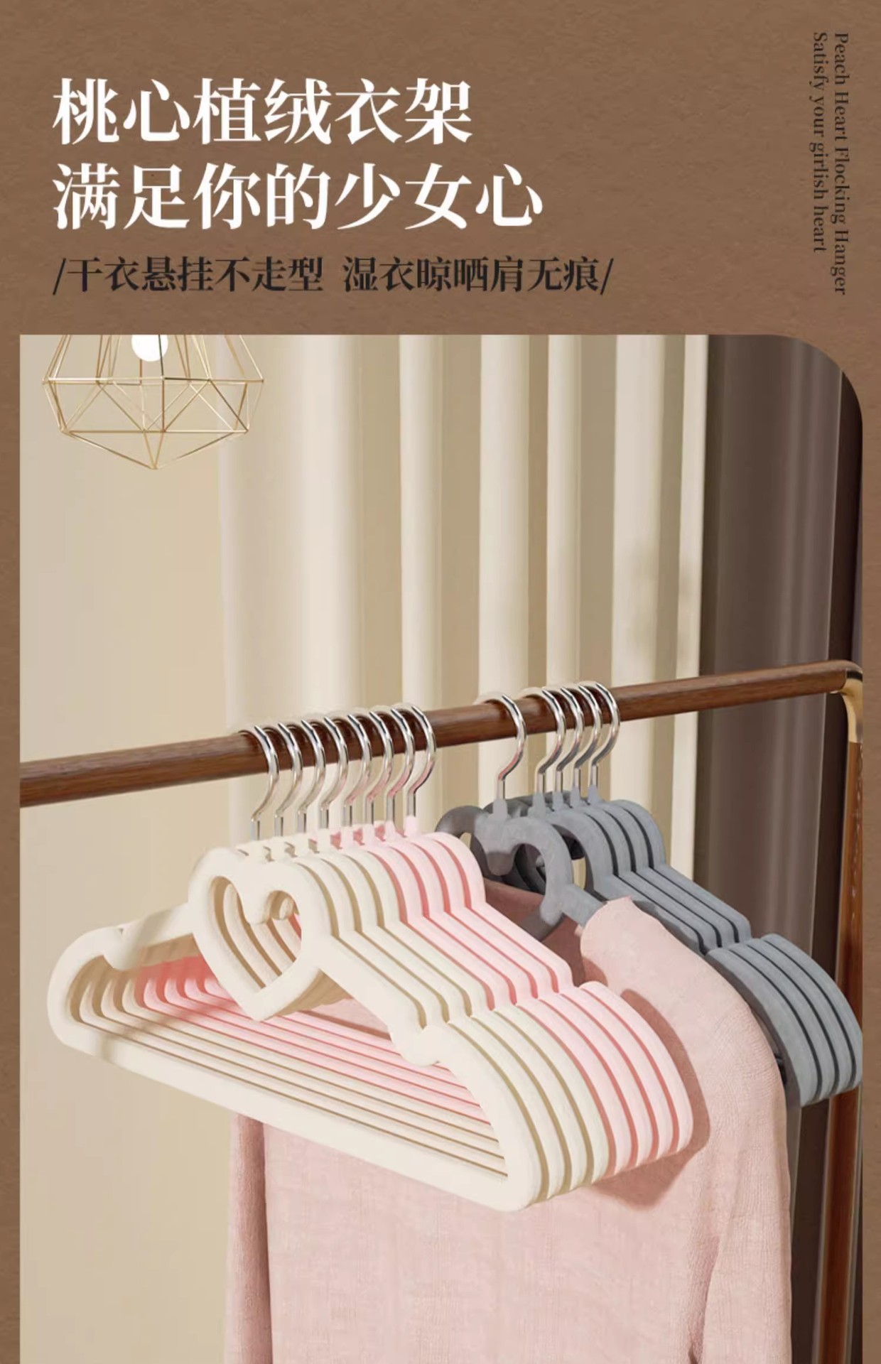 러브 플록 옷걸이, 흔적 없는 미끄럼 방지 일본식 옷 지지대, 가정용 기숙사 보관 옷 걸이, 습식 및 건식 옷걸이