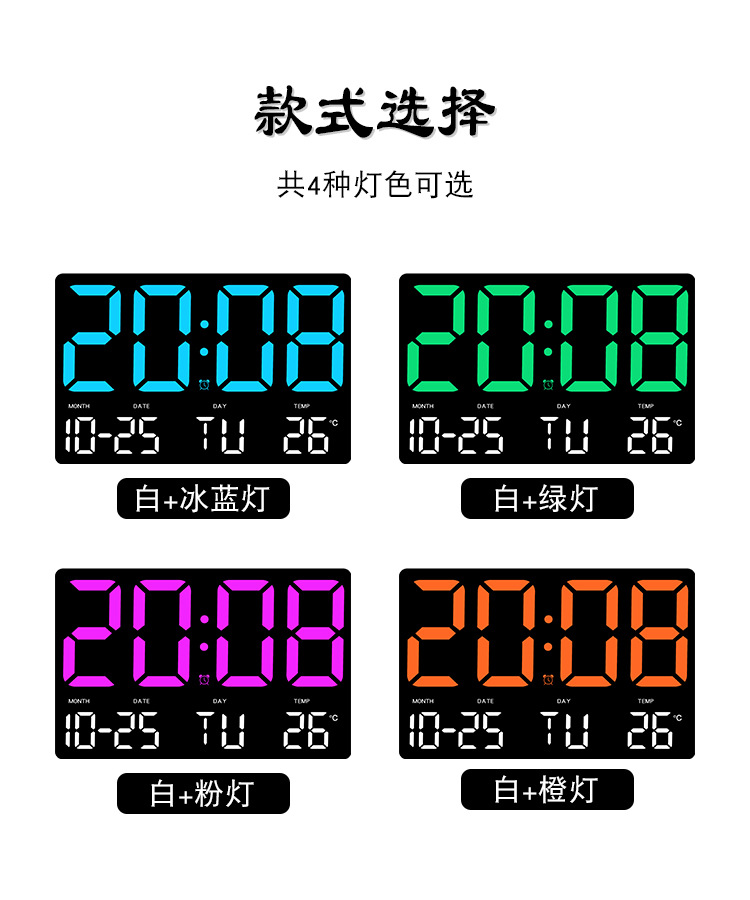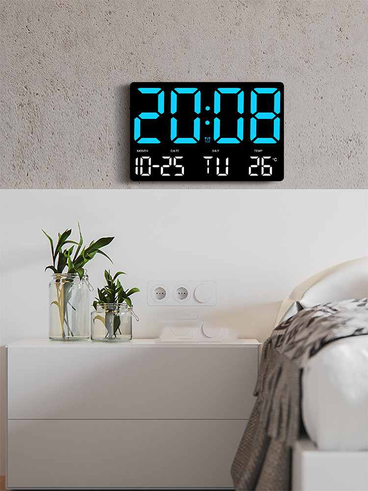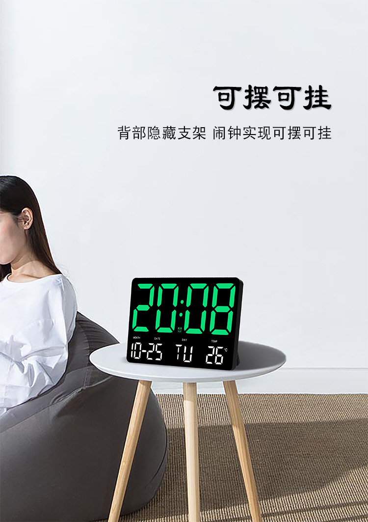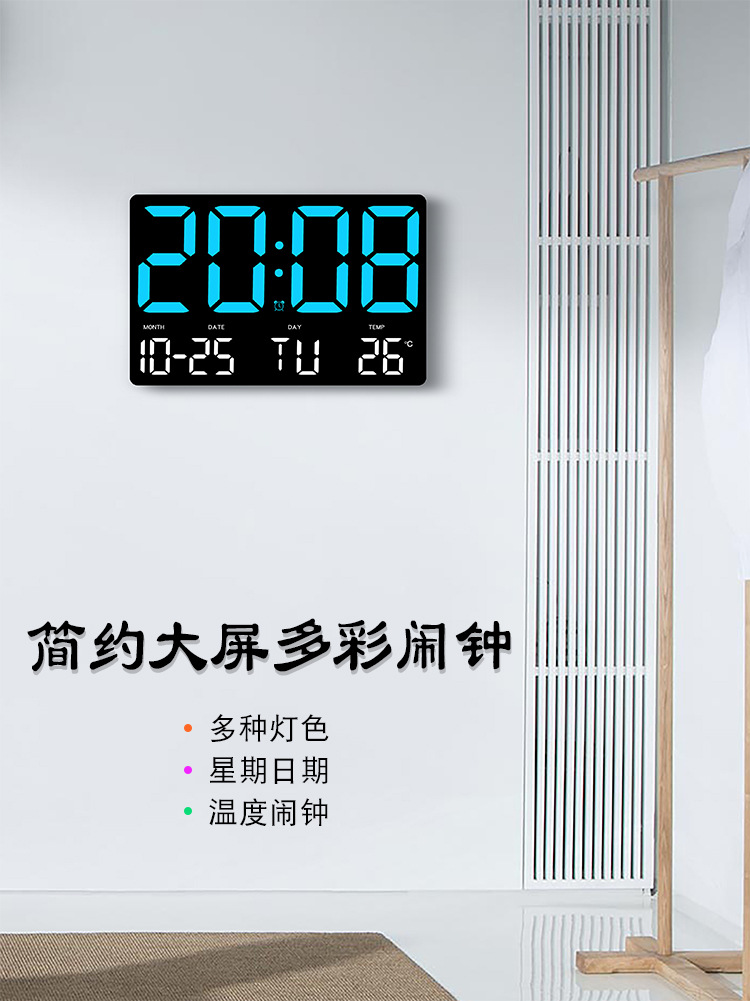 국경 대형 스크린 시계 간단한 스타일 거실 벽 시계 매달려 이중 목적 시계 다기능 알람 시계스토어 가기