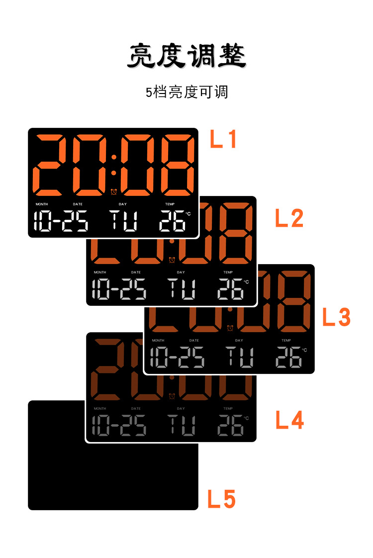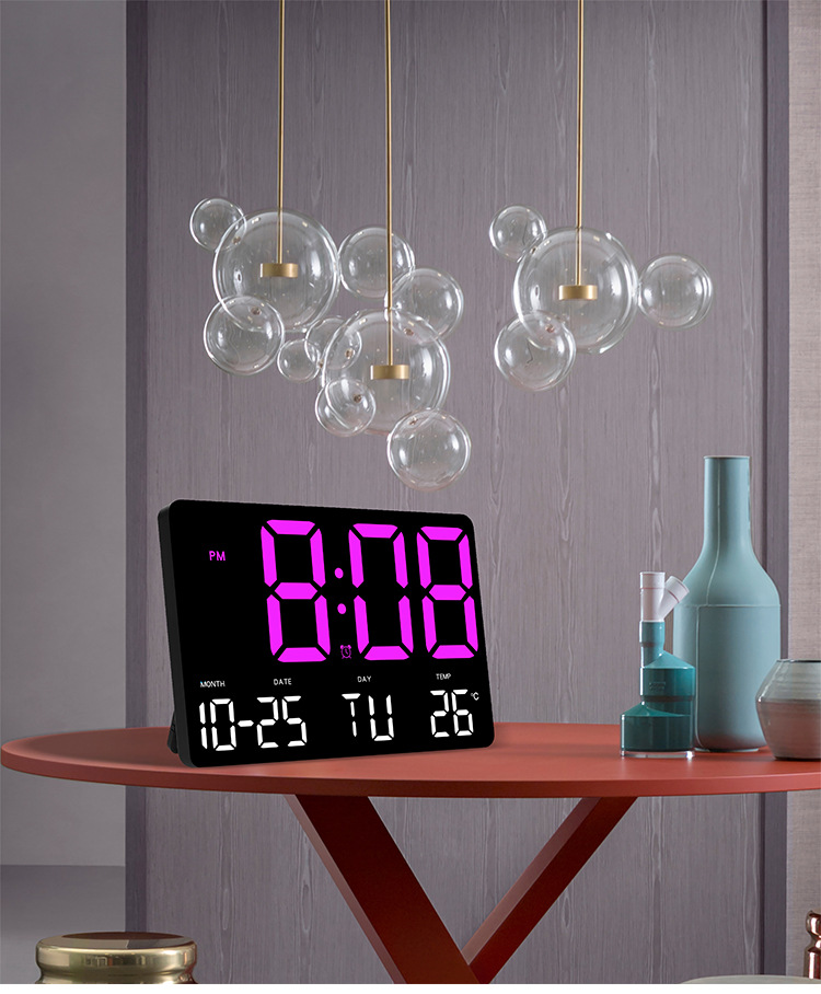 국경 대형 스크린 시계 간단한 스타일 거실 벽 시계 매달려 이중 목적 시계 다기능 알람 시계