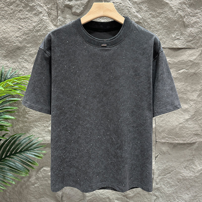 2025 여름 새로운 남성 스타 짧은 소매 유럽 패션 캐주얼 느슨한 단색 올 매치 패션 트렌드스토어 가기