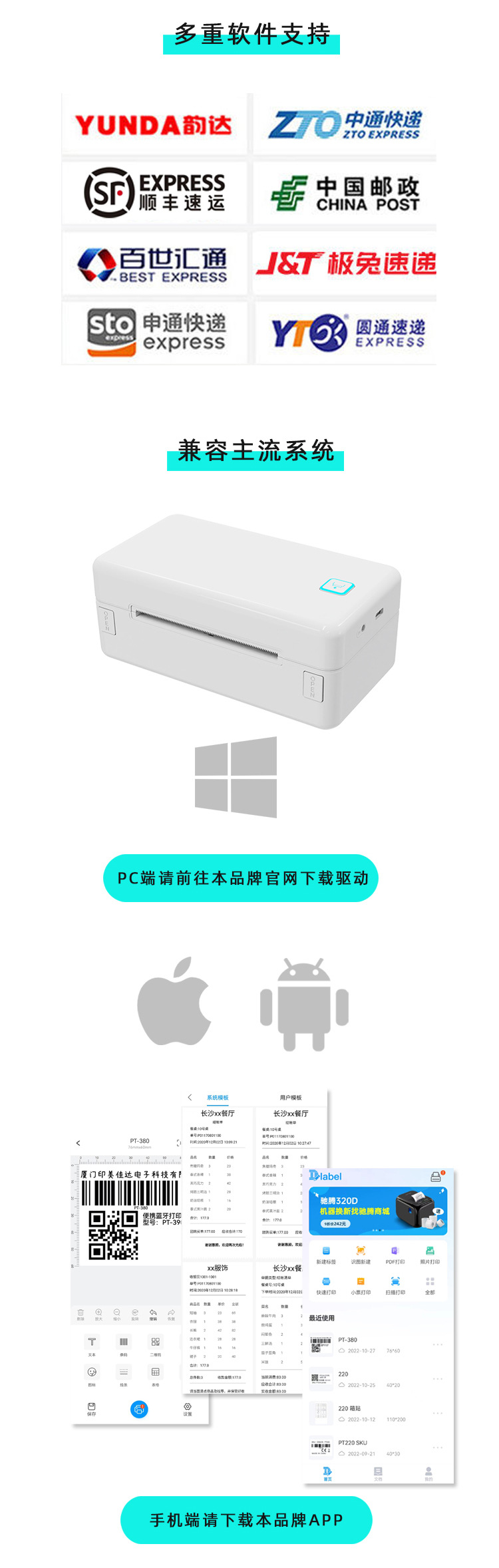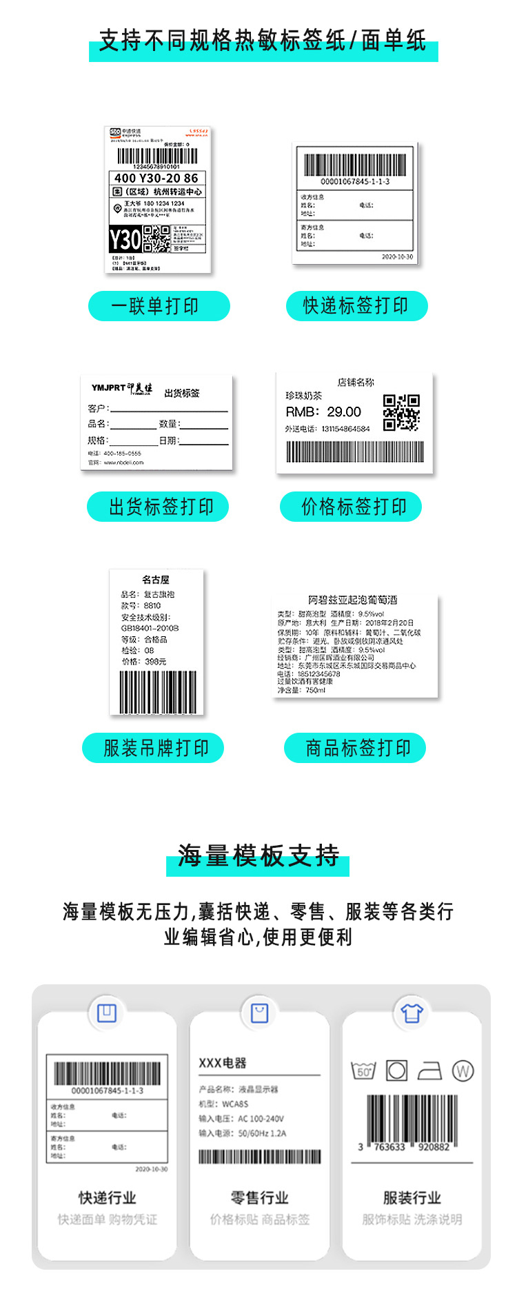 익스프레스 라벨 프린터 열 블루투스 전자 라벨 바코드 자체 접착 라벨 태그 인쇄 메모 홈스토어 가기