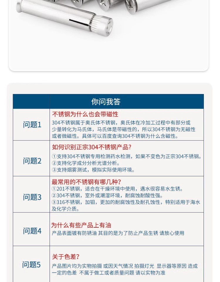 국가 표준 304/201 스테인레스 스틸 크로스 카운터 헤드 내부 확장 나사 플랫 헤드 볼트 내부 폭발 MM6M8M10M12스토어 가기