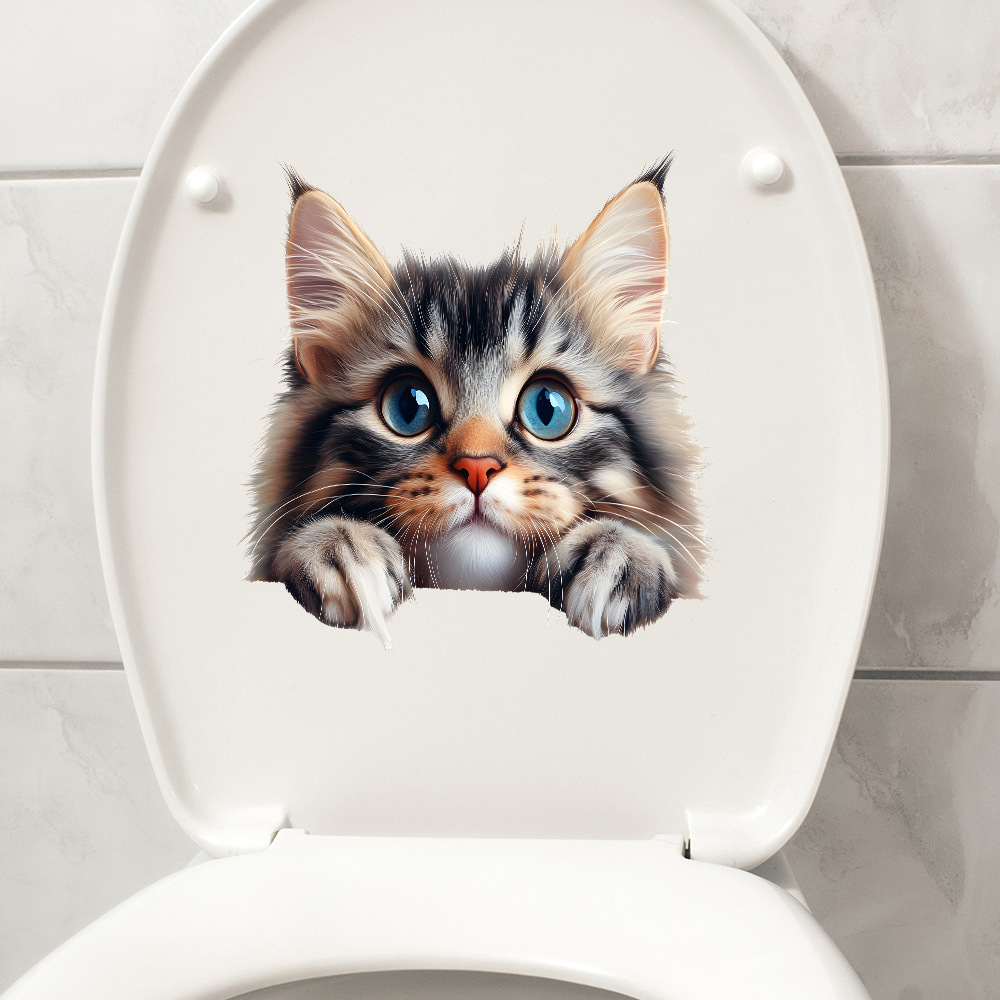 팬 Xi 만화 귀여운 새끼 고양이 욕실 화장실 화장실 스티커 미화 장식 스티커 도매 자기 접착