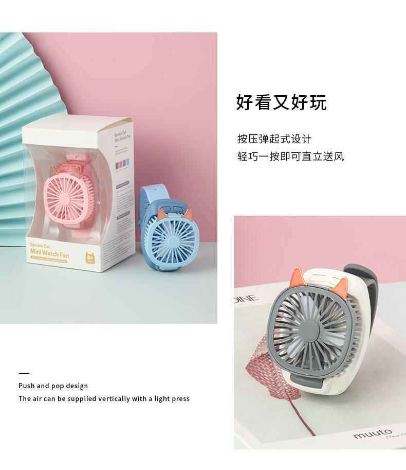 인기있는 만화 시계 팬 미니 충전 학생 야외 휴대용 소형 팬 어린이 날 장난감 무료 배송스토어 가기