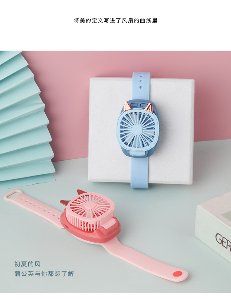 인기있는 만화 시계 팬 미니 충전 학생 야외 휴대용 소형 팬 어린이 날 장난감 무료 배송
