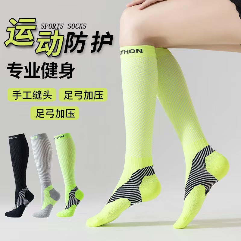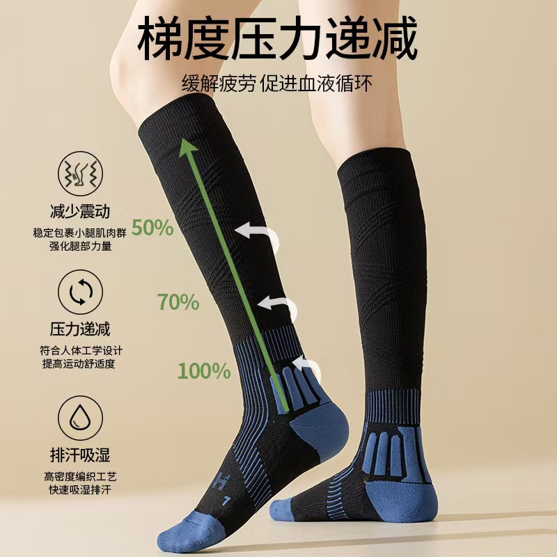 여성용 압축 양말, 단색 가을 겨울 수건 바닥 두꺼운 컬러 매칭 스포츠 종아리 양말, 땀 흡수 및 탈취제 긴 압축 양말