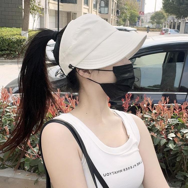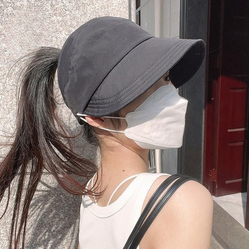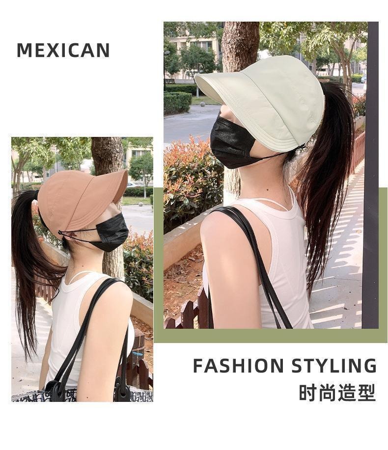 여름용 단색 얇은 여아용 모자는 높은 포니테일로 묶을 수 있고 마스크와 자외선 차단 모자로 걸 수 있으며 통기성이 좋은 로즈 빈 탑 여름 모자로 야외에서 착용할 수 있습니다.스토어 가기