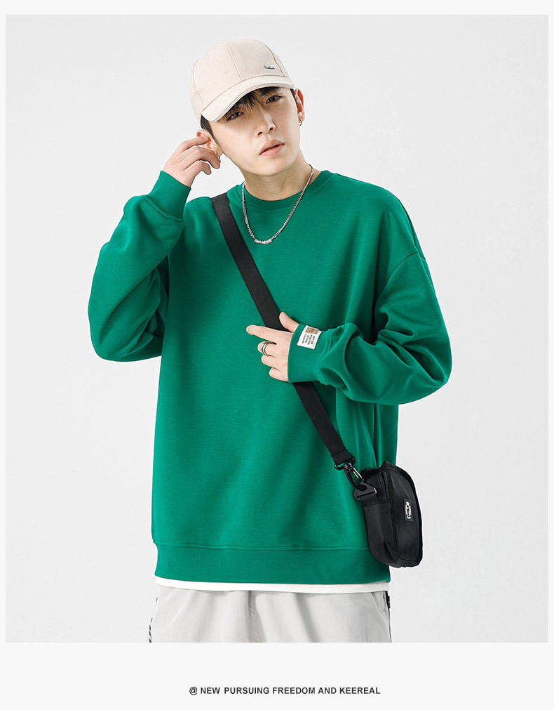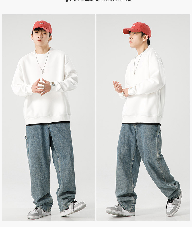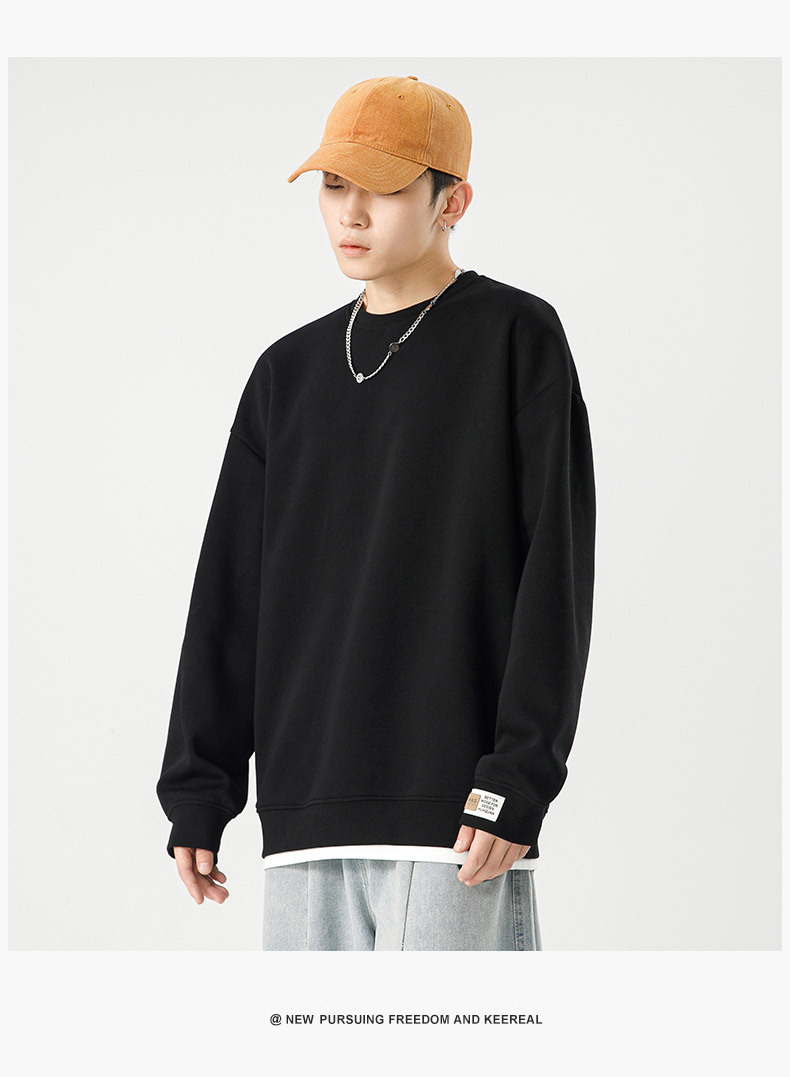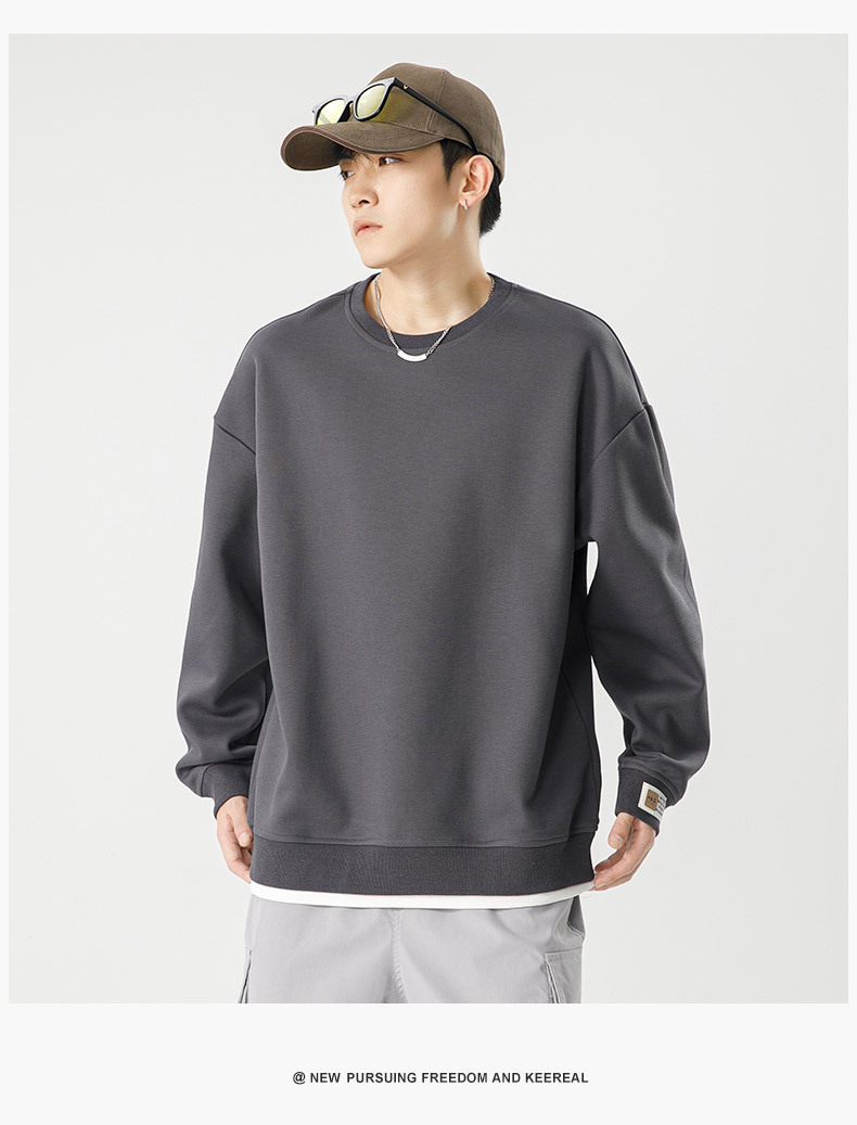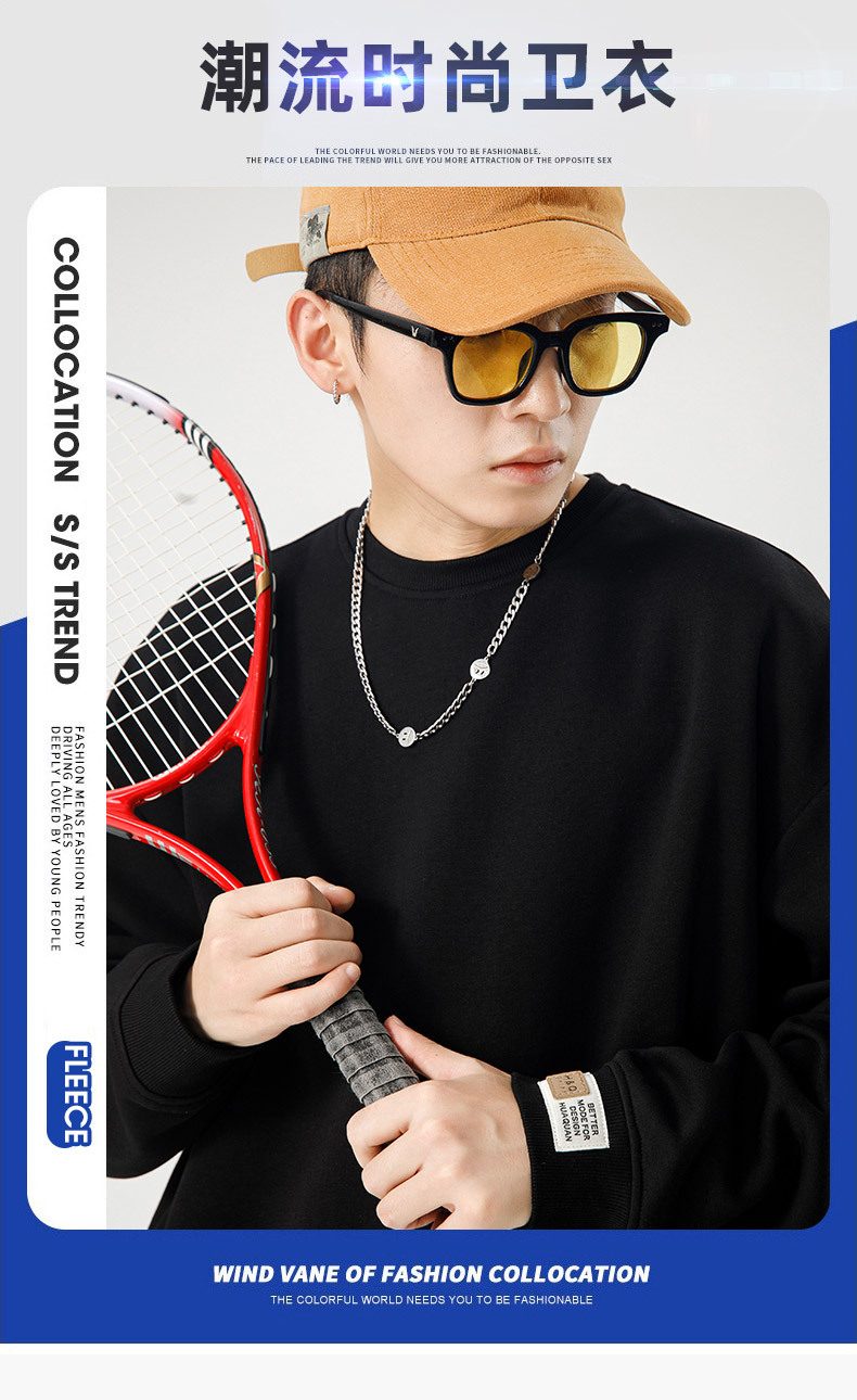 무료 배송 남성용 라운드 넥 스웨트 셔츠 2025 봄, 가을 새로운 헤비급 미국 다목적 캐주얼 스포츠 커플 스타일