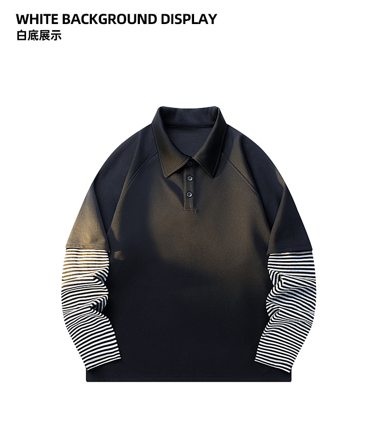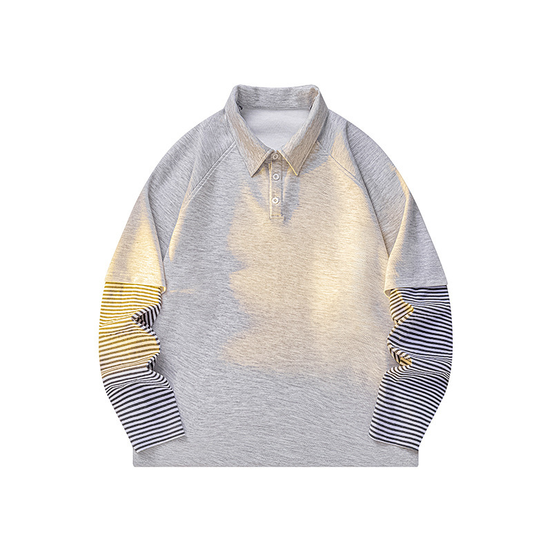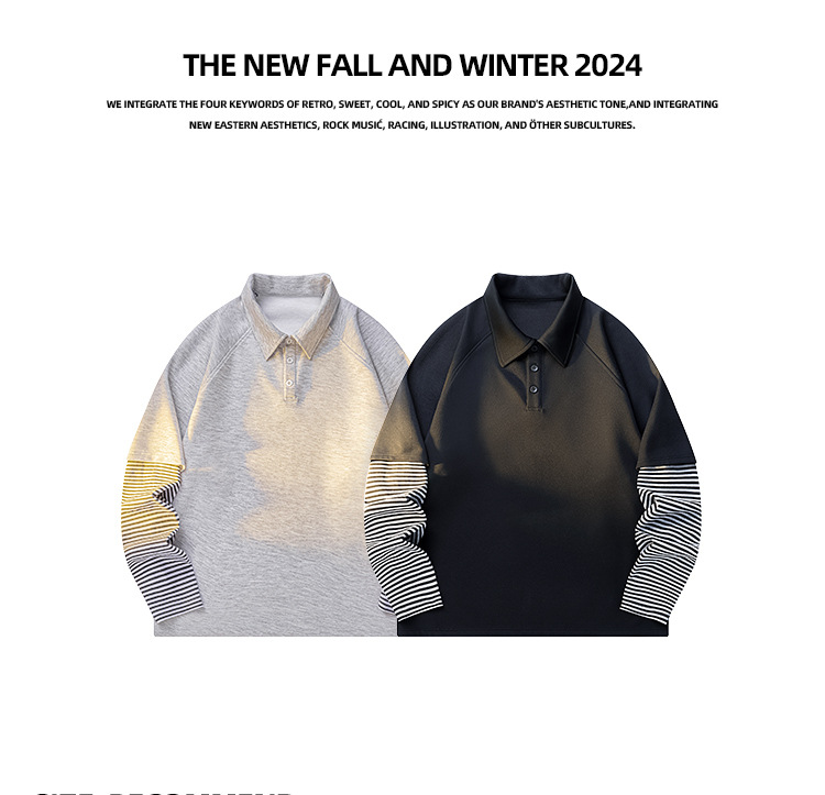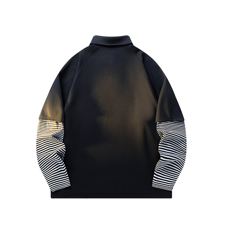 무료 배송 스웨터 남자 아메리칸 스트라이프 바느질 가짜 투피스 봄 올 매치 패셔너블 캐주얼 루즈 옷깃 긴 소매