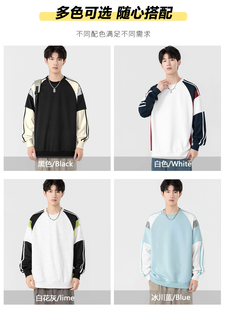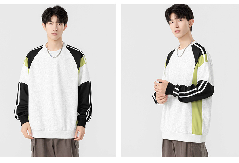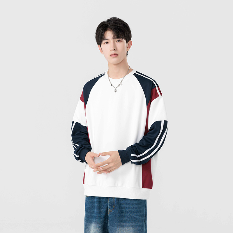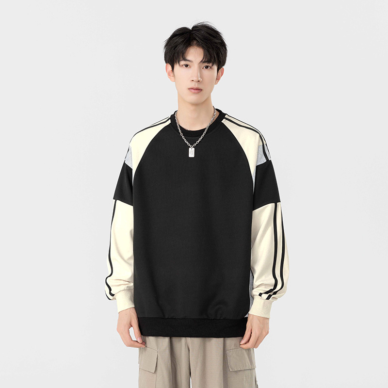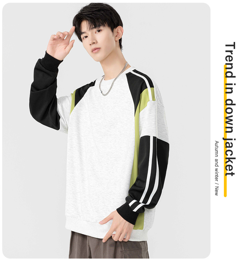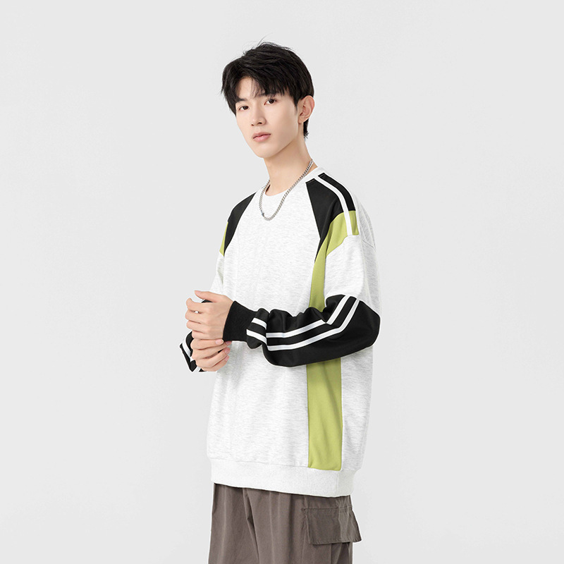 무료 배송 라운드 넥 스웨트 셔츠 긴팔 봄, 가을 새로운 느슨한 바닥 트렌디 브랜드 스플 라이스 대비 색상 다목적 캐주얼 소년 클래식스토어 가기