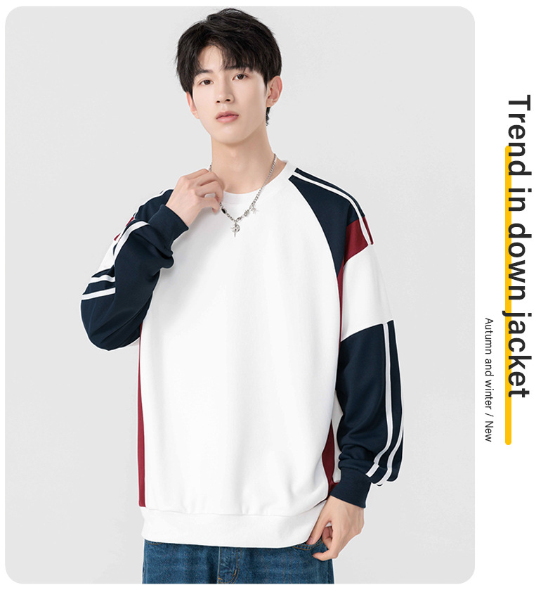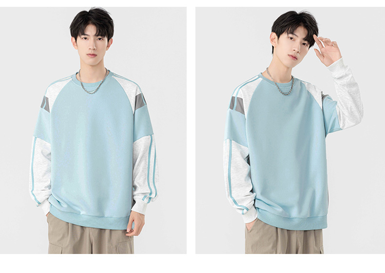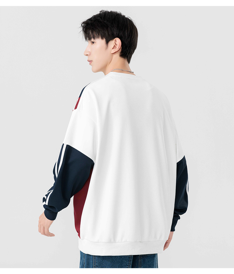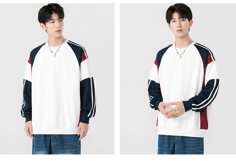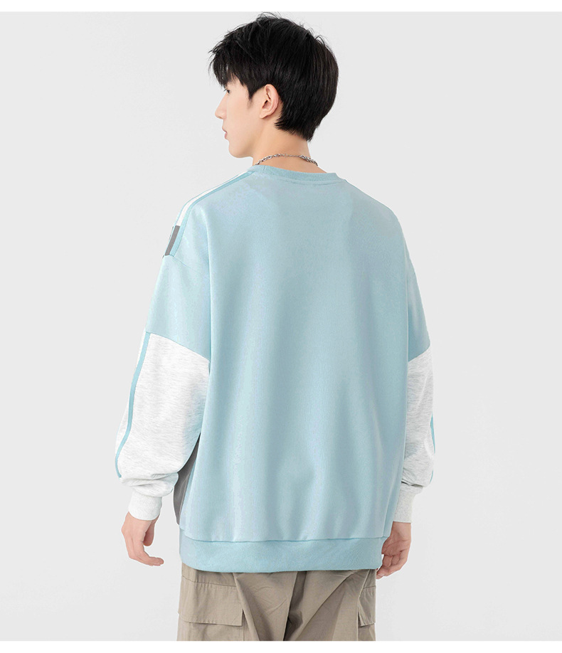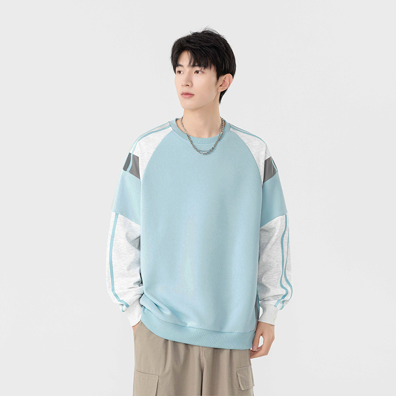 무료 배송 라운드 넥 스웨트 셔츠 긴팔 봄, 가을 새로운 느슨한 바닥 트렌디 브랜드 스플 라이스 대비 색상 다목적 캐주얼 소년 클래식스토어 가기