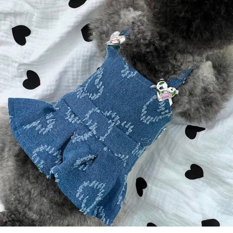 봄여름 애완동물 데님 러브탑과 스커트 테디 비숑 강아지 고양이 2종 세트+헤어 액세서리스토어 가기