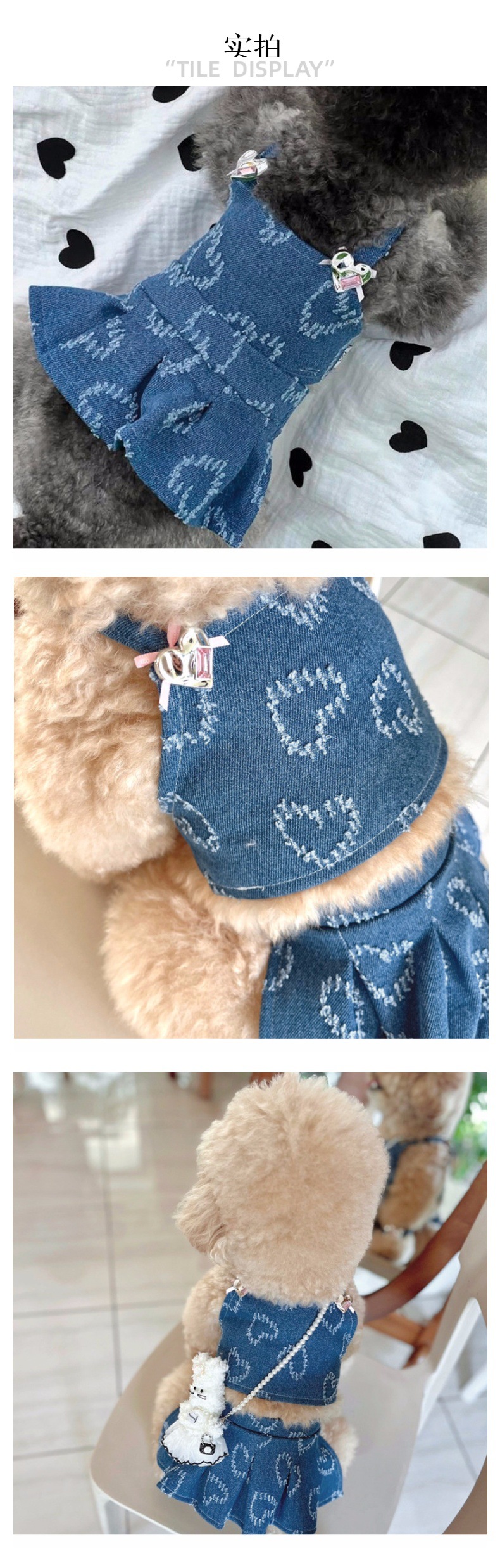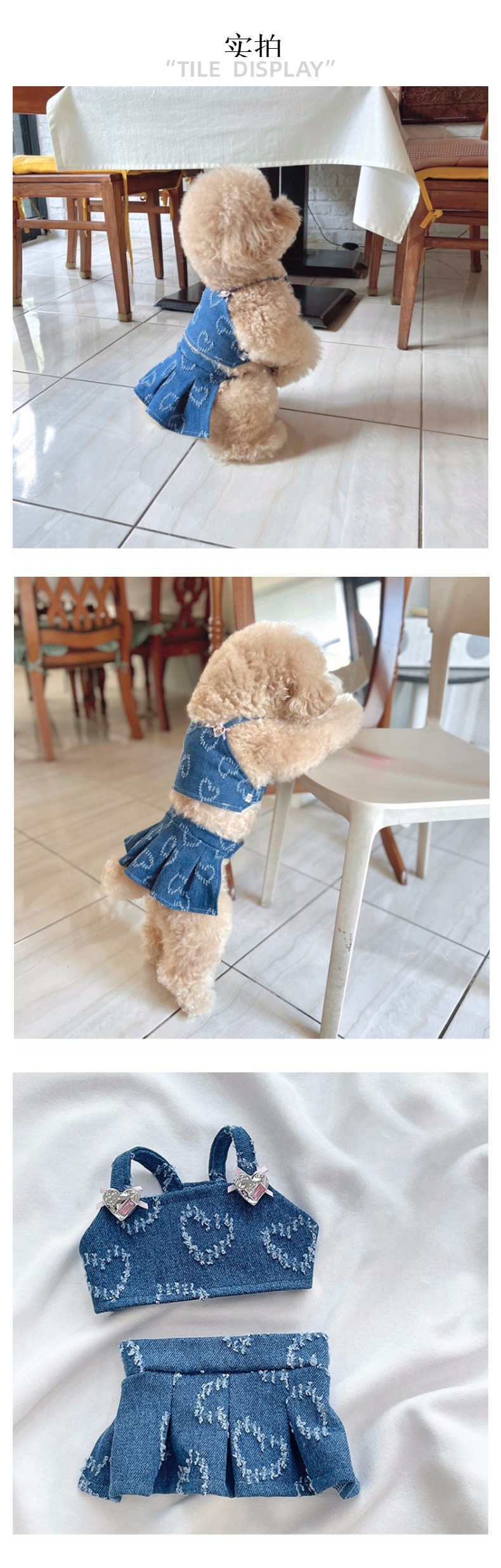 봄여름 애완동물 데님 러브탑과 스커트 테디 비숑 강아지 고양이 2종 세트+헤어 액세서리