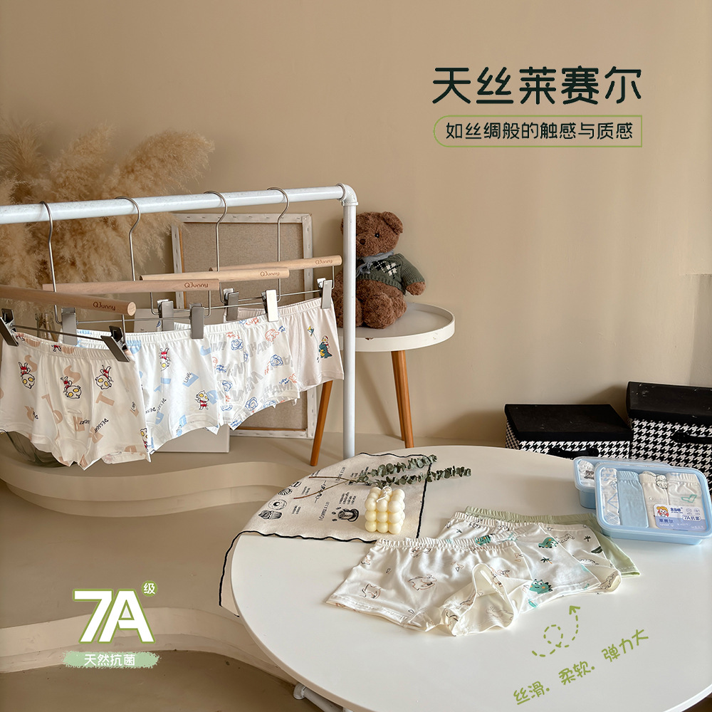아동용 속옷, 엉덩이를 조이지 않는 남아용 리오셀 흡습, 통기성 7A 항균 여아용 사각팬티스토어 가기