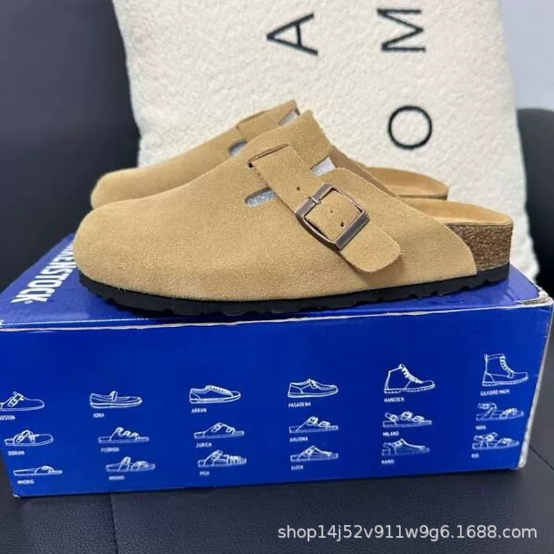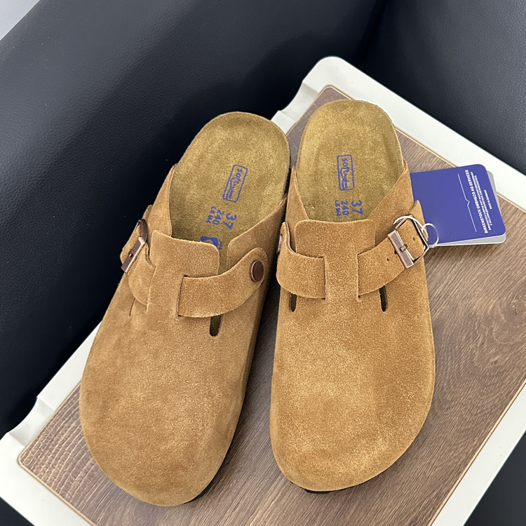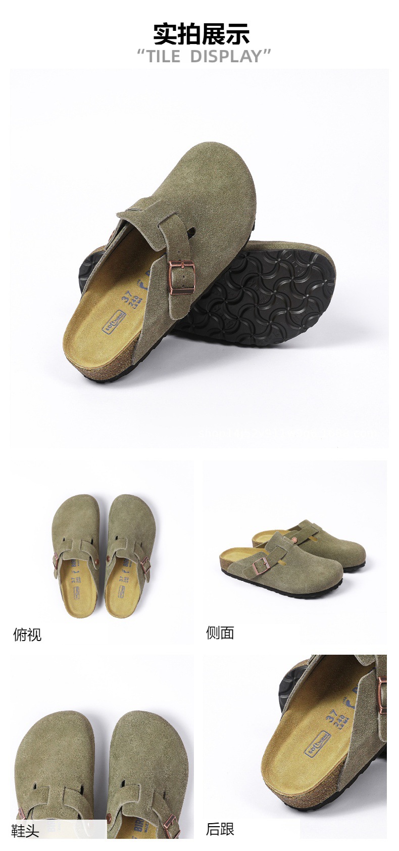 소가죽 보켄 슈즈, 레트로 천연가죽 하프슬립, 편안한 코르크 슈즈, 보켄 슈즈, 아우터웨어, 캐주얼 토캡 슬리퍼, 보스턴스토어 가기