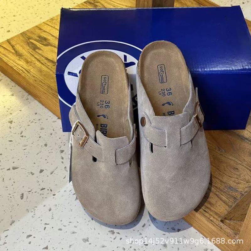 소가죽 보켄 슈즈, 레트로 천연가죽 하프슬립, 편안한 코르크 슈즈, 보켄 슈즈, 아우터웨어, 캐주얼 토캡 슬리퍼, 보스턴