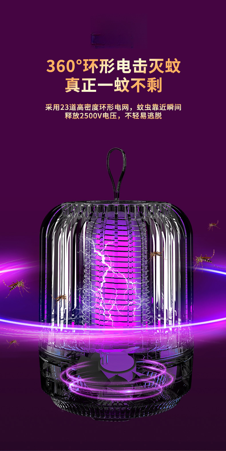 • 강력한 전기충격 + 넓은 면적의 모기덫 + 새장 모양