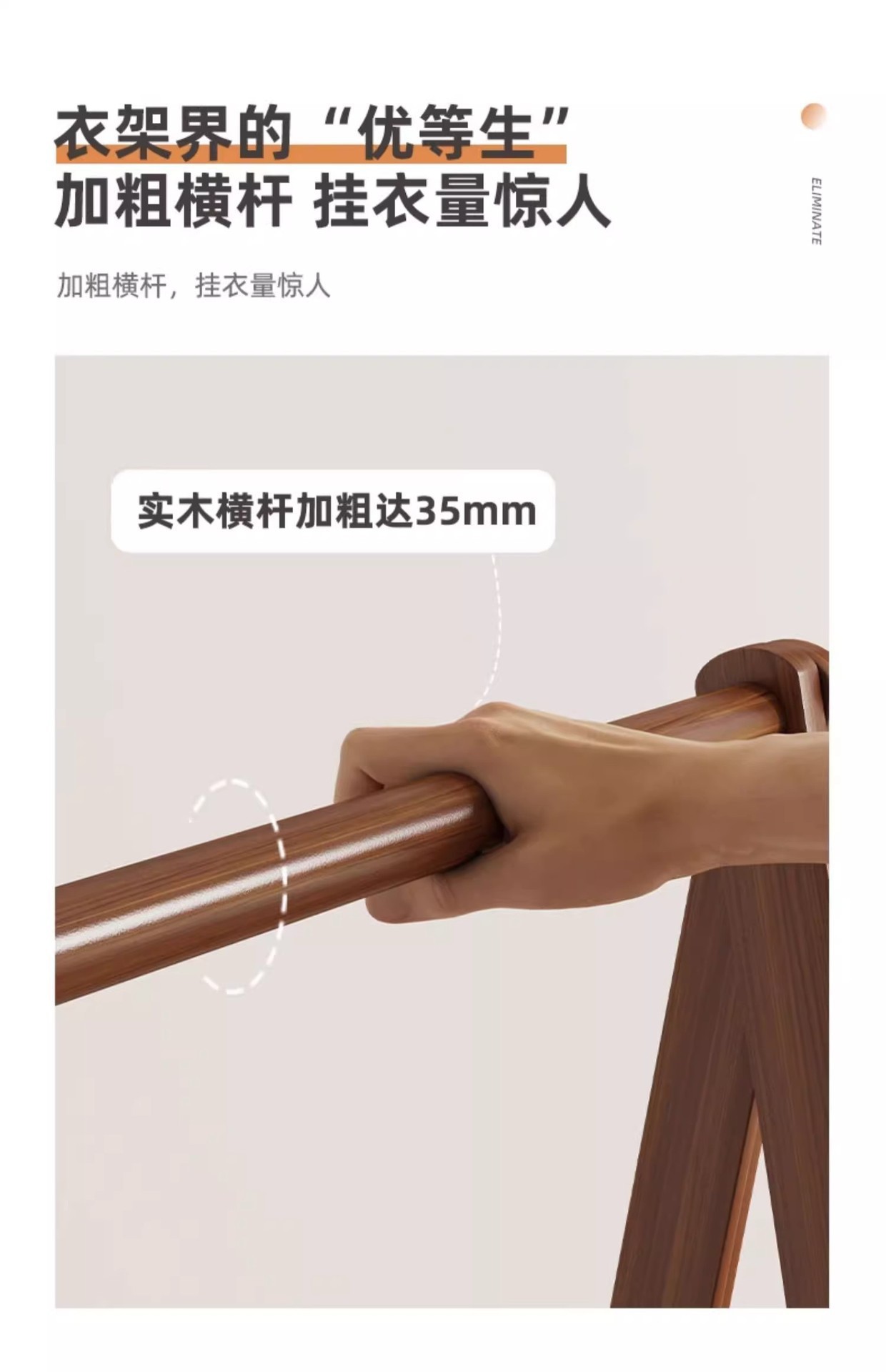 • 버전 2.0 수입 원목 두꺼워짐 - 100cm - 호두색 [바지 걸이 포함]